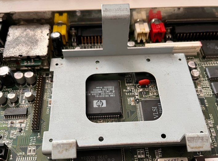 Se zkompletovanou základní deskou by bylo vhodné se podívat „na chrup“ královny poněkud detailněji. První rozdíl, který člověka praští do očí, ve srovnání se staršími modely, jsou výrobci čipů. Zatímco ve starších modelech A500+ a A600 jsou veškeré hlavní čipy z čipové sady pod logem CSG (Commodore Semiconductor Group), u Amigy 1200 se na první pohled směje velký čip od VLSI a další od HP.