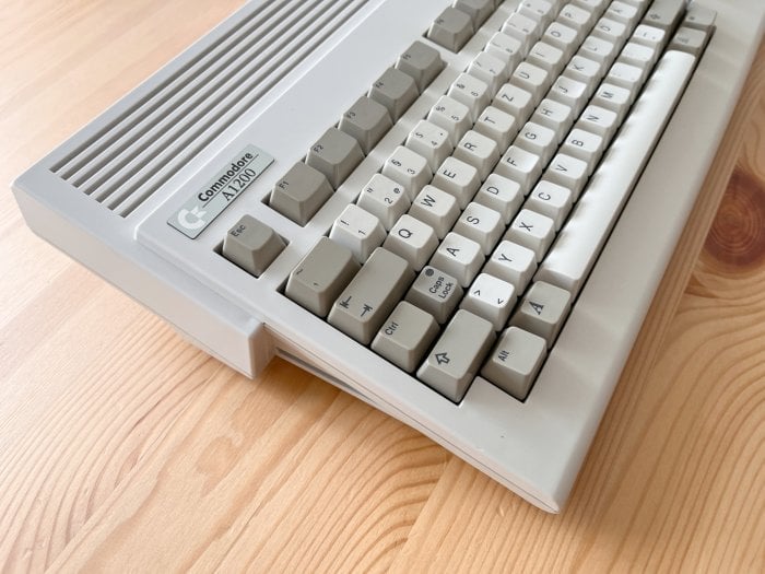 Retrobrighting u A1200 má ale svoje specifika. Jelikož se mi ten projekt táhl už dlouho, bylo první kolo retrobrightingu ještě metodou umístění venku na slunci. Pak počítač zůstal ležet nějakou dobu ladem, a dokončení probíhalo již mojí poslední variantou, a to doma v nádobě osvětlené pomocí UV LED a zahřívané akvarijním topítkem. Nicméně u A1200, i když jsem použil stejnou metodu jako na od kamaráda získané Commodore 64 a 1541, kde byly výsledky naprosto špičkové, tak zde i po této dvojité proceduře zůstal drobný žlutý nádech, nic výrazného, ale viditelné to je, jak na plastech, tak na klávesách. Přes tento stav se již nemohu dostat, tedy považujme naši královnu obdařenu pár drobnými znamínky krásy. Jinak plasty vypadají opravdu dobře, poškození je minimální.