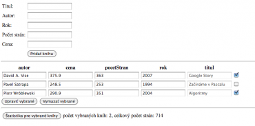 V tomto momente už beží Bandicoot s programom knihy.b a po otvorení súboru knihy.html v internetovom prehliadači je možné začať pracovať s aplikáciou.