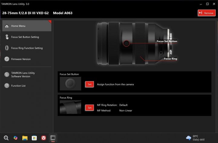 Podobně je na tom Tamron, který nabízí několik moderních objektivů s USB-C konektorem pro digitální fotoaparáty – například 28–75mm F/2.8 Di III VXD G2, 35–150mm F/2–2.8 Di III VXD nebo 20–40mm F/2.8 Di III VXD. Tyto objektivy lze připojit k počítači a aktualizovat jejich firmware pomocí aplikace Tamron Lens Utility. Ale opět – pouze ve Windows nebo macOS. Mobilní aplikace sice existuje, ale slouží jen k nastavení parametrů, nikoliv k samotné aktualizaci firmware. Jiný výrobci (Samyang s aplikaci Lens manager či Sigma s aplikací Optimization Pro) to ale mají úplně stejně. Umožní vám aktualizovat firmware objektivů doma, ale jen na počítači s Microsoft Windows či macOS.