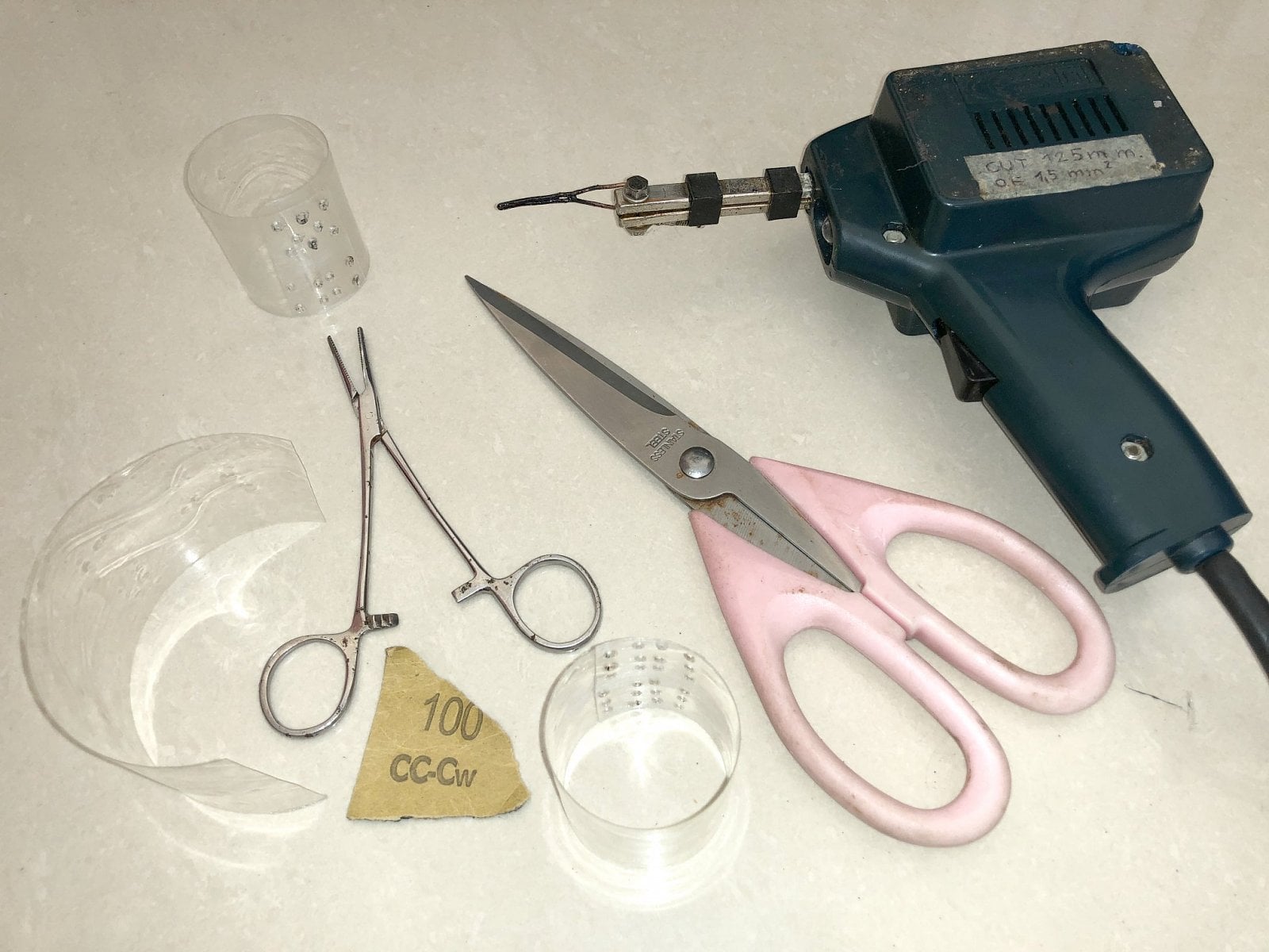 - volitelně pro výrobu adaptéru: plastovou desku a PET láhev, páječku, štípačky, nůžky, peán, smirek, gumu z duše, chemoprén