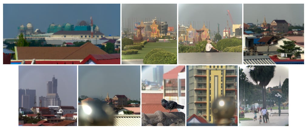 Dalekohled 7× zvětšující s aperturou 50 mm od firmy Bausch & Lomb je limitujícím prvkem ostrosti: jeho výstupní obraz je méně ostrý než samotný telefon. Další limitace je mihotání vzduchu u vzdálených předmětů.