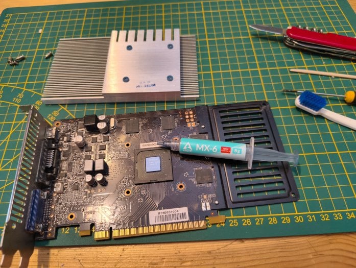 Klasika u staršího železa: vyčistit, přepastovat, sestavit zpět. Donedávna jsem používal pastu Noctua NT-H1, takže ještě nevím, jak je to s dlouhodobou životností Arctic Cooling MX-6. Uvidíme.