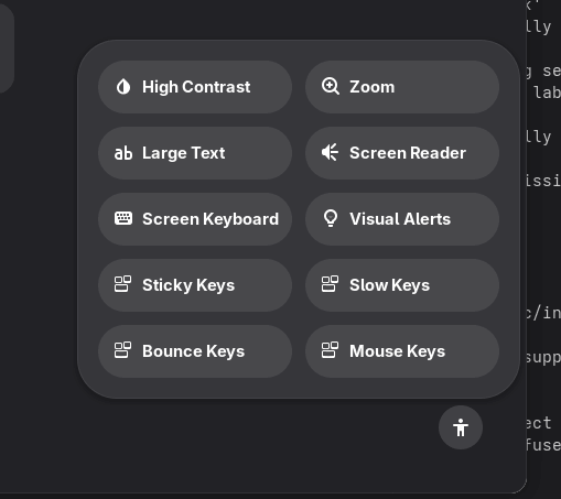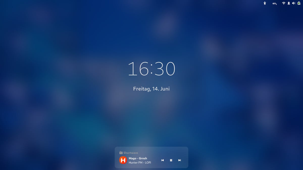 GDM má nově taky jednodušeji dosažitelnou nabídku s funkcemi přístupnosti, která se nachází v pravém dolním rohu. A pokud si za uzamknutém počítači necháte puštěnou hudbu a přehrávač podporuje MPRIS, zobrazí se vám na widget, který zobrazuje informace o přehrávané skladbě a umožňuje přehrávání ovládat.