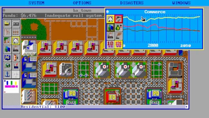 Obrázek 9: Grafický režim s rozlišením 640×350 pixelů v šestnácti barvách použitý ve hře Sim City.