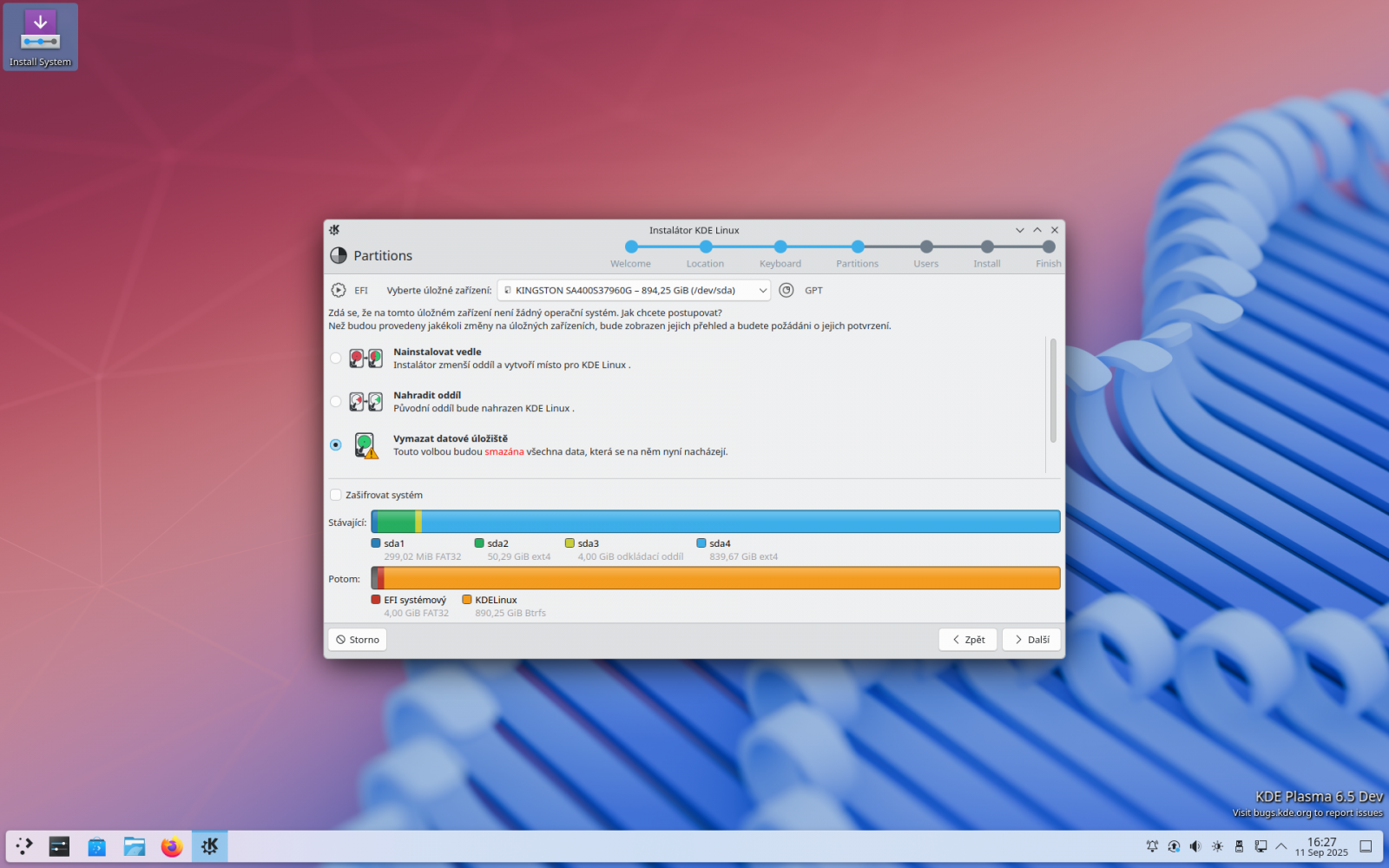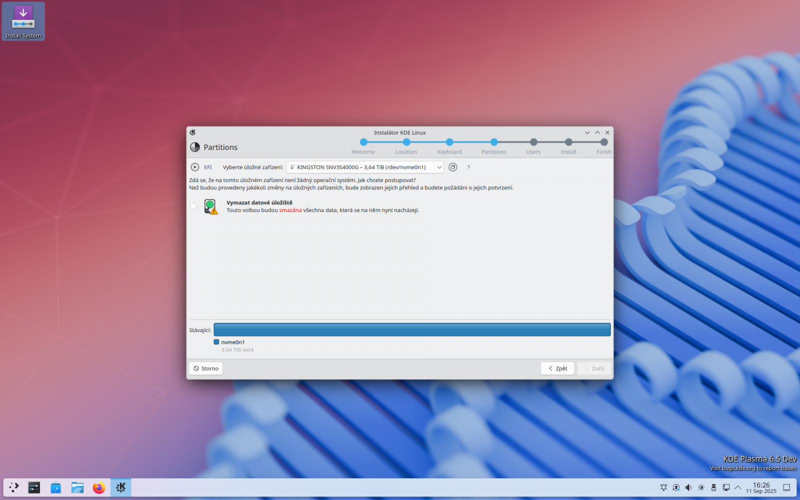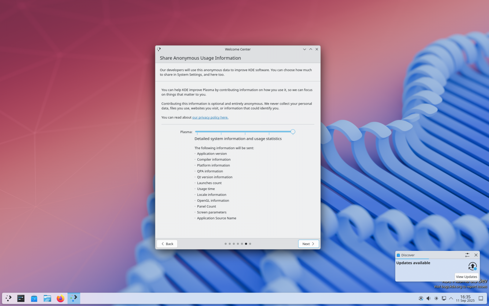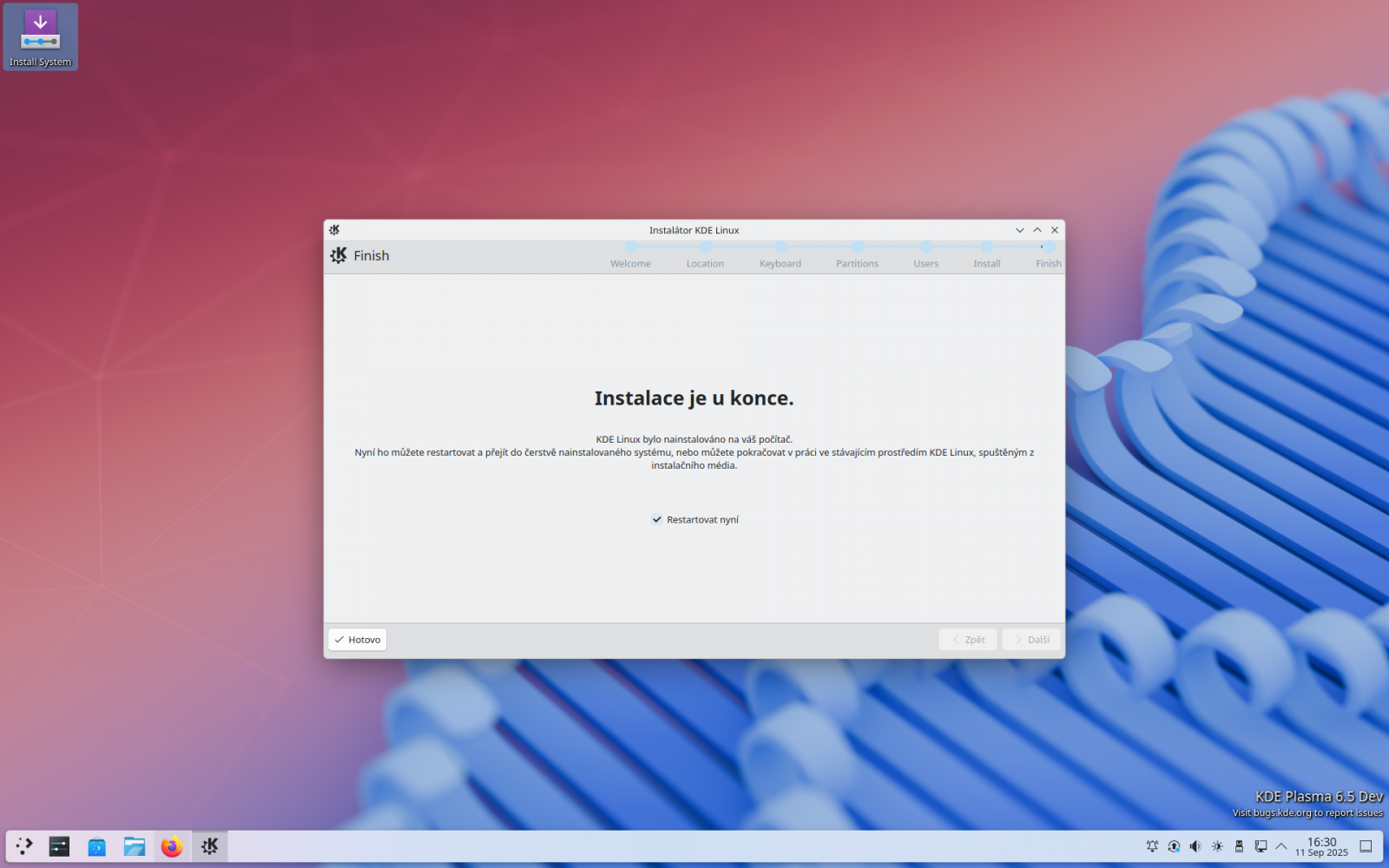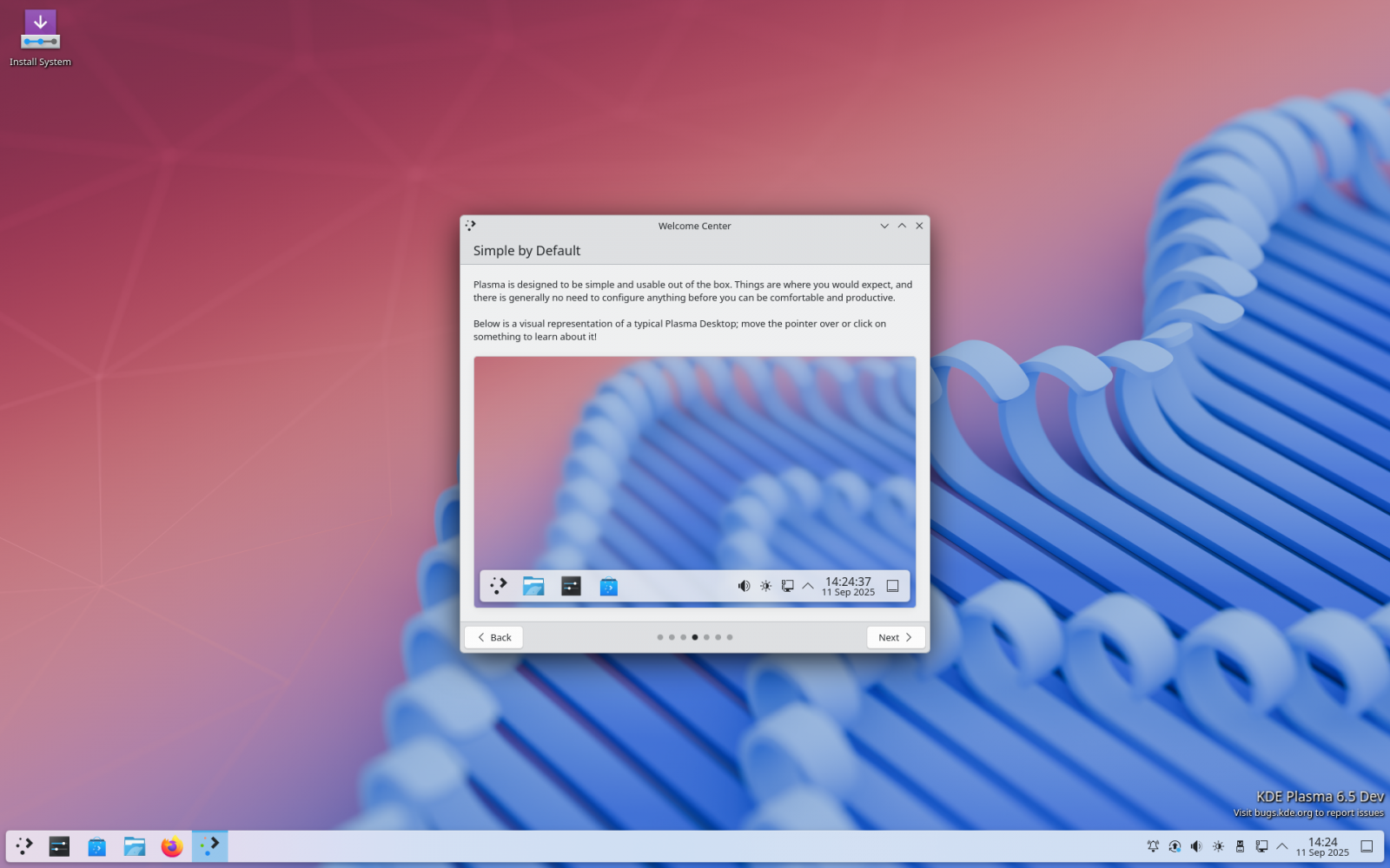 Tvůrci také doplnili pár technických informací. Předně: toto je „ten pravý KDE OS“. Mění se tak role dosud nabízené distribuce KDE Neon, na bázi Ubuntu LTS, tvůrci projektu KDE se rozhodli připravovat vlastní linuxovou distribuci se specifickými parametry a toto je distribuce, která bude ukazovat KDE a Plasmu tak, jak vypadá v ryzí podobě přímo od tvůrců. Referenční implementace.