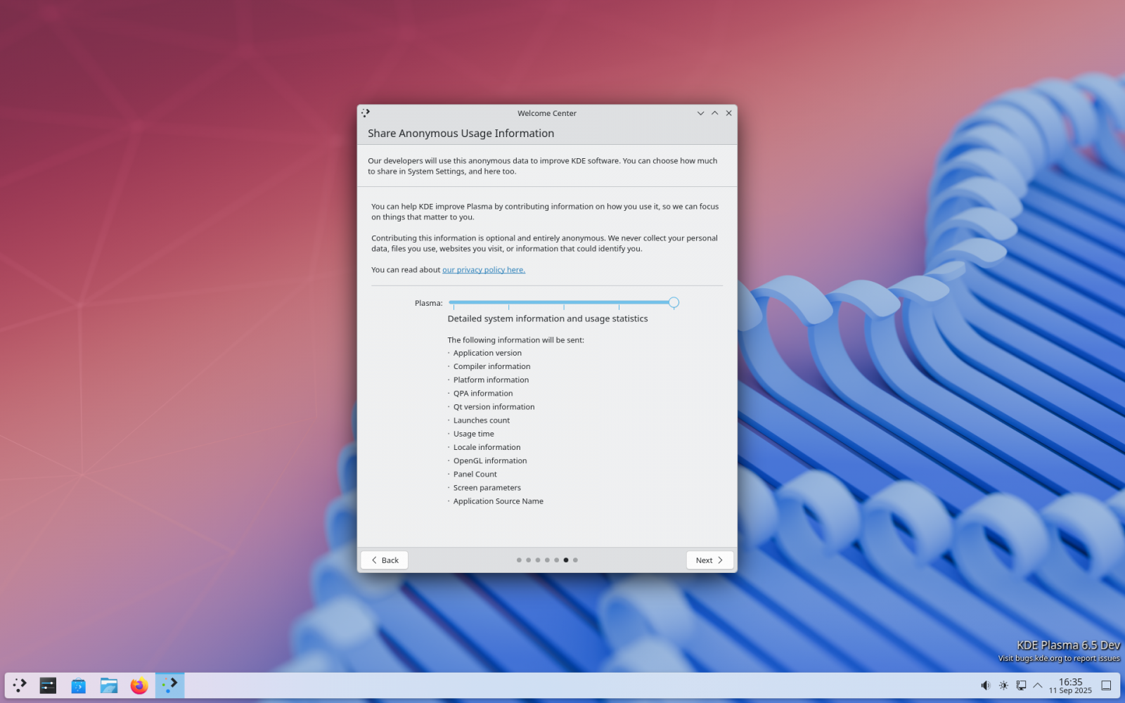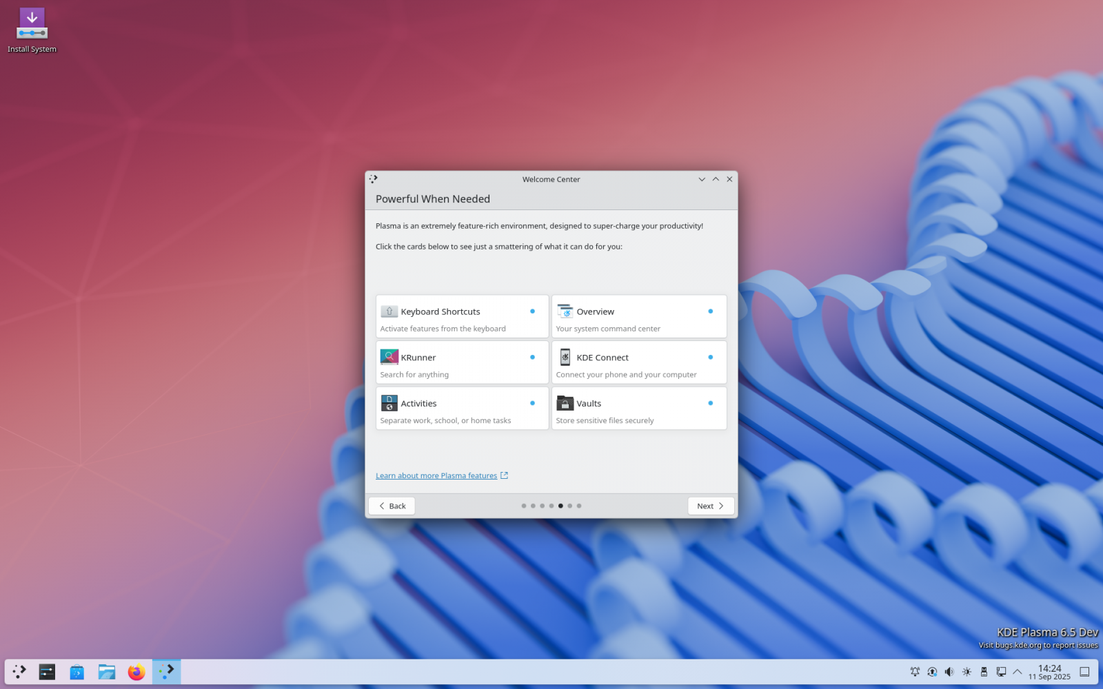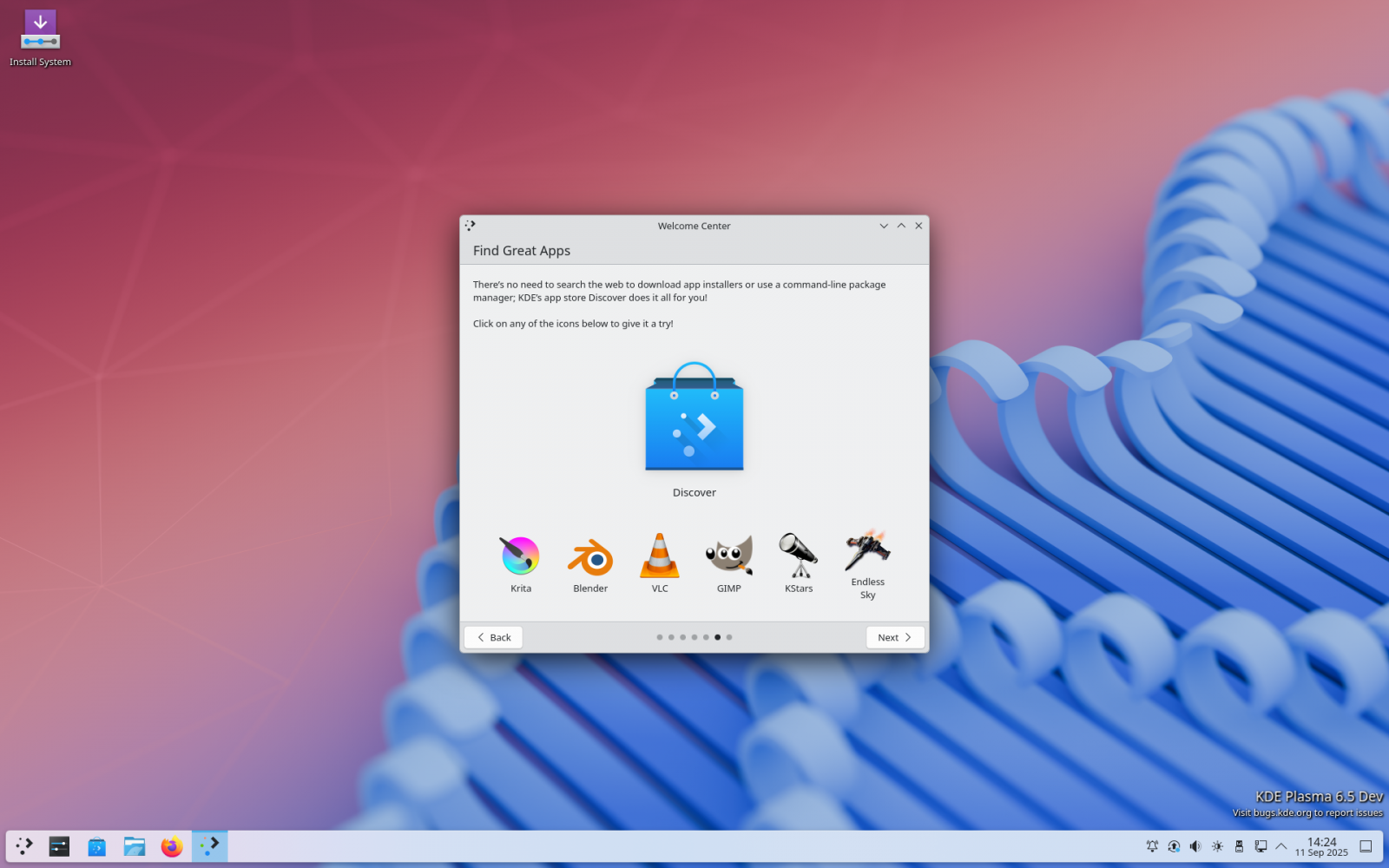 Tvůrci speciálně žádají o hlášení chyb, a to jak k systému samotnému, tak k aplikacím ve Flatpacích, které KDE Linux používá.