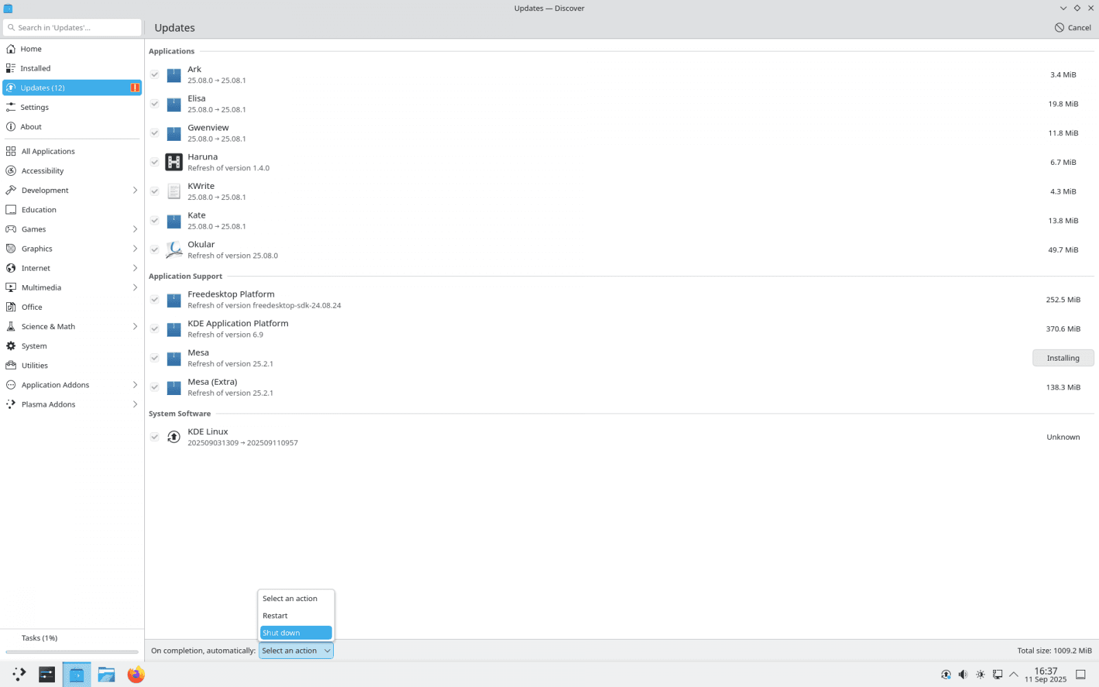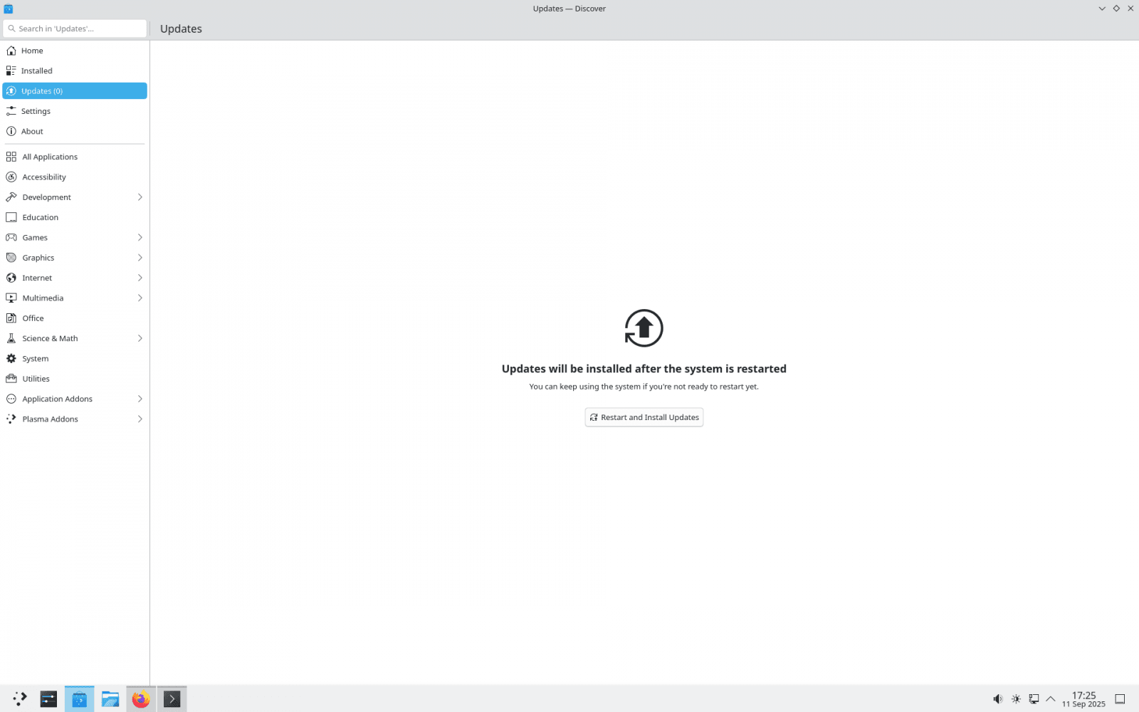Na to, že jde o alfa verzi, je systém na mém postarším Ryzenu generace Zen2 a 13 let starém Radeonu svižný, stabilní a bezproblémový. Pouze konstatuji, že aktualizace trvají opravdu dlouho, až desítky minut, a není to pomalostí mé internetové přípojky, ale tím, že aktualizace se (může jít o souhru okolností) mi stahovaly rychlostí ve stovkách kB/s – projekt asi zatím nemá tolik zrcadel a rychlou síťovou infrastrukturu. Vše tedy běželo pomalu, nicméně spolehlivě a po následném restartu už naběhl nový obraz systému.