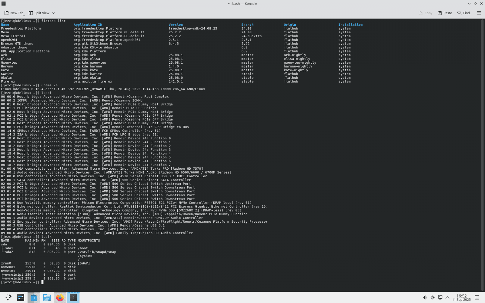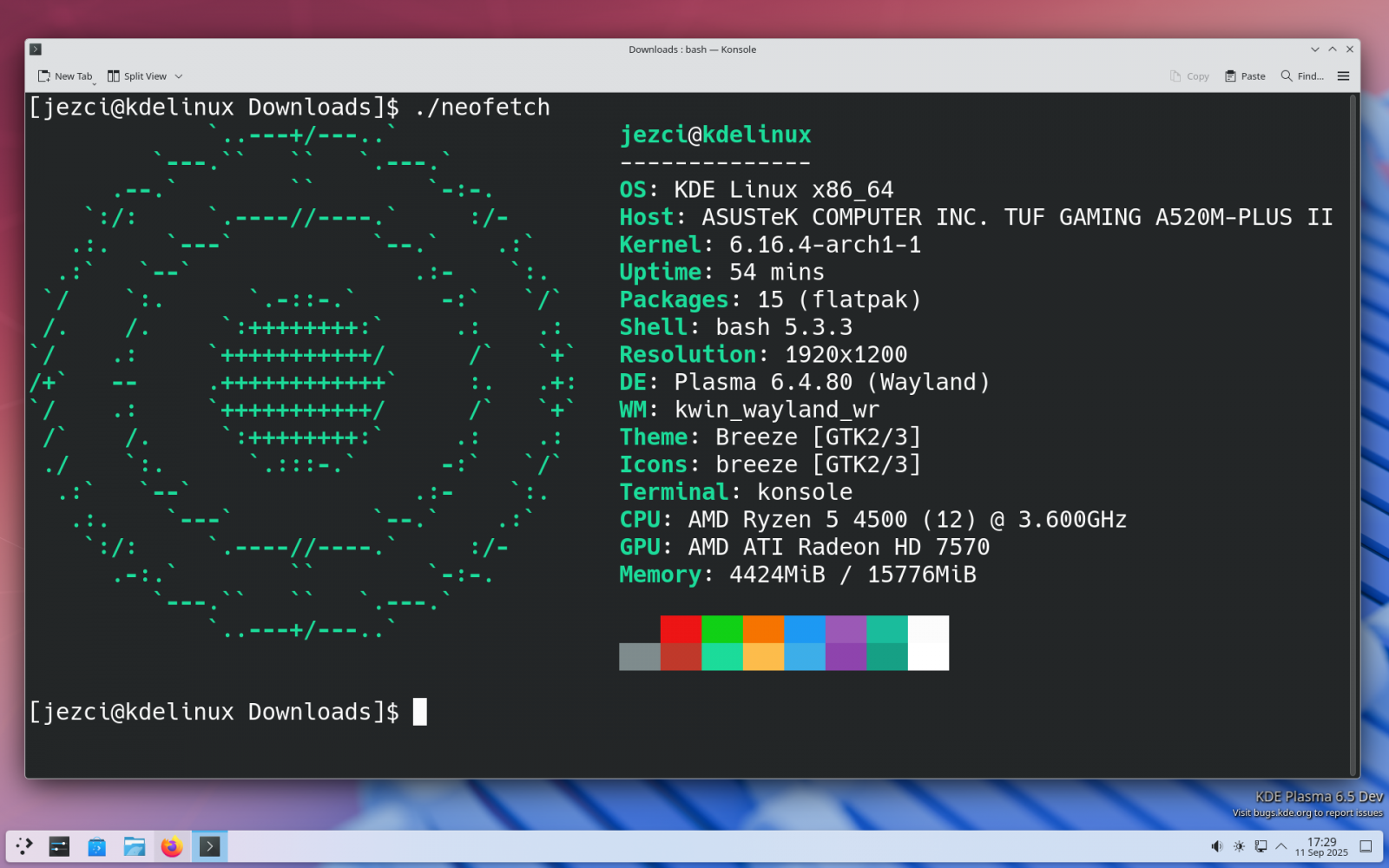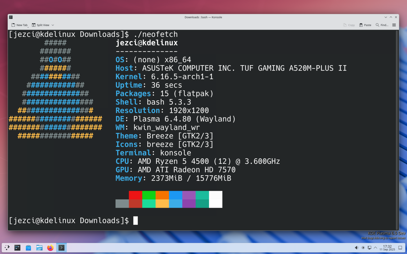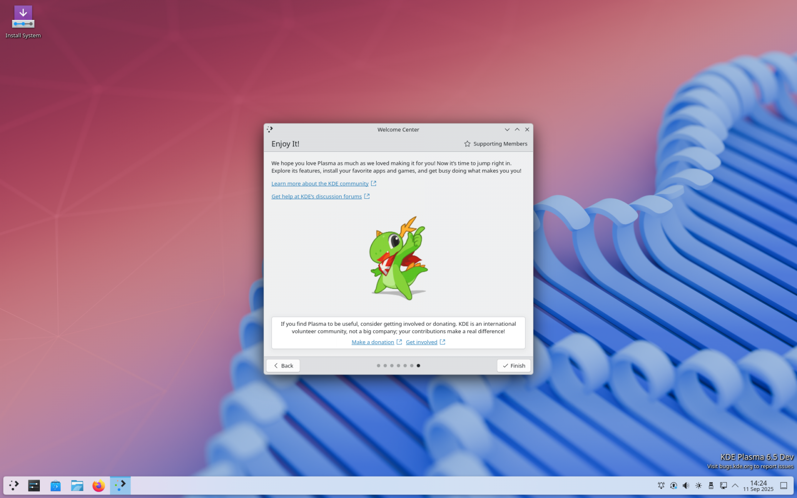 Alfa verzi KDE Linuxu jsem používal v součtu zhruba jeden den. Navazuji ale na nedávné hrátky s openSUSE Tumbleweed na nějaké aktuální verzi KDE Plasmy (asi 6.4.něco), pročež si dovoluji říci, že kromě některých drobností, kterých jsem si buď nevšiml, nebo se odehrály ve věcech, které typicky nepoužívám, je v KDE Linuxu nasazená vývojová Plasma 6.5 shodná co do uživatelského zážitku s běžnou Plasmou 6.4.x.