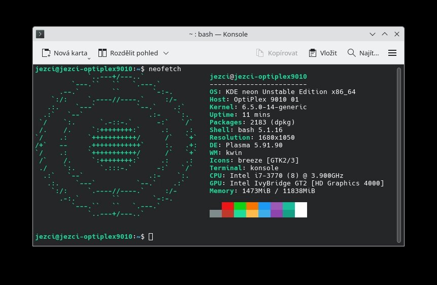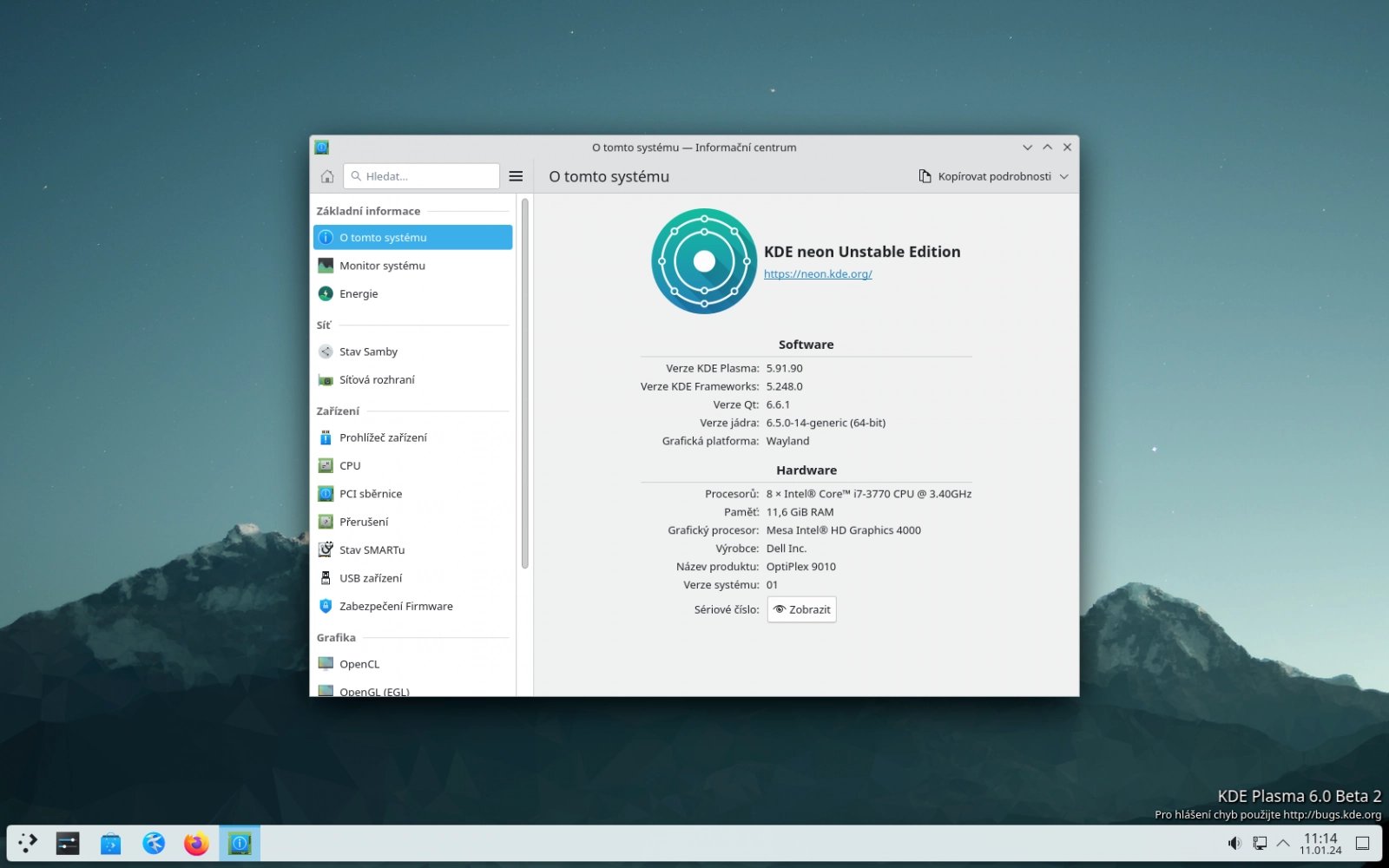 Plasmu 6.0 je nyní možné testovat ve všech distribucích, kteří testovací větev nabízejí, mezi nimiž nechybí vlastní distribuce KDE Neon, který ve větvi Unstable šestkovou Plasmu obsahuje. Tuto cestu jsem využil i já, a to na už téměř 12 let starém desktopu Intel Ivy Bridge postaveném na procesoru Intel Core i7–3770 s 12GB RAM, integrovaným grafickým jádrem a stařičkým 128GB SSD, vše připojeno přes DisplayPort k monitoru s rozlišením 1680×1050.