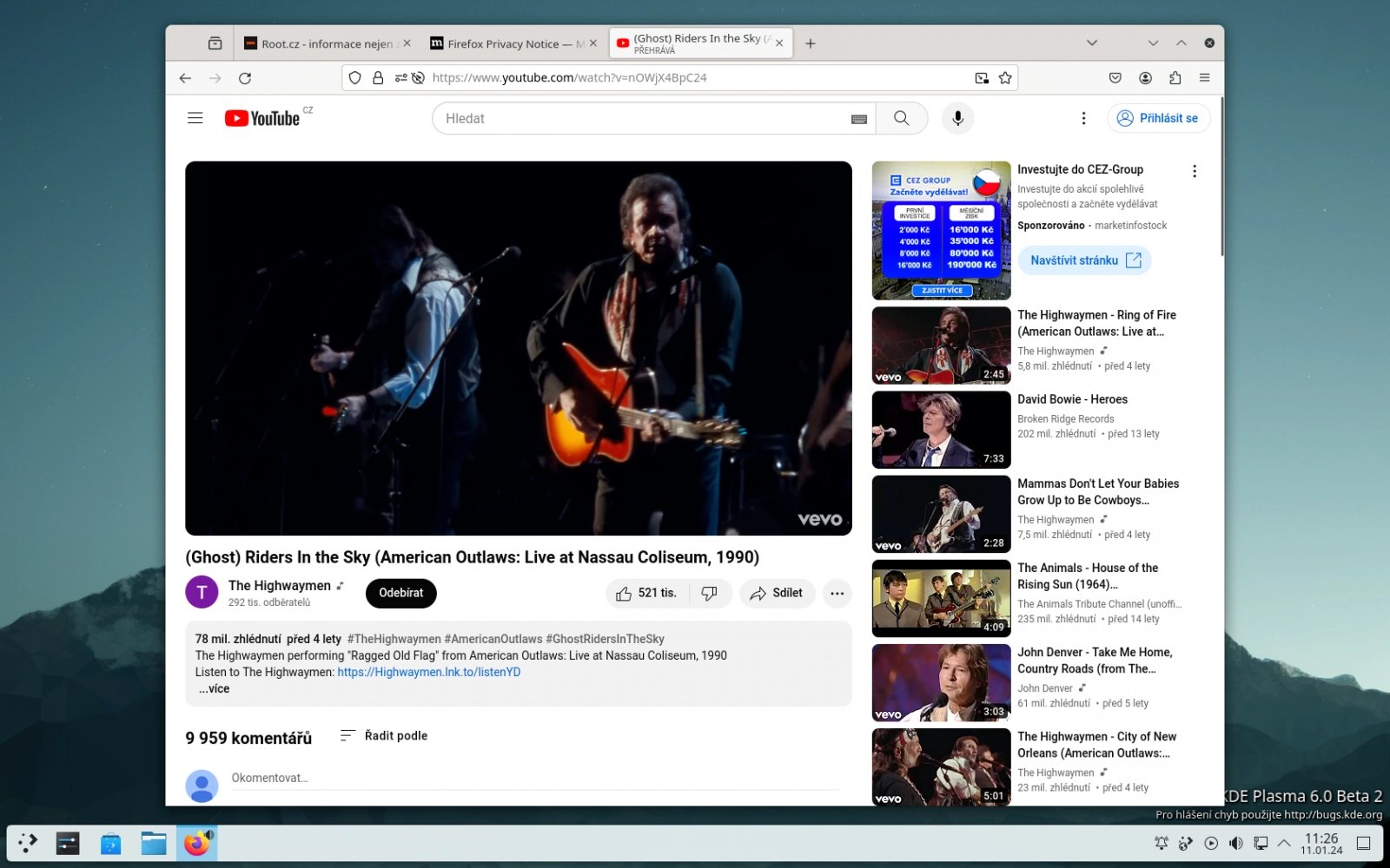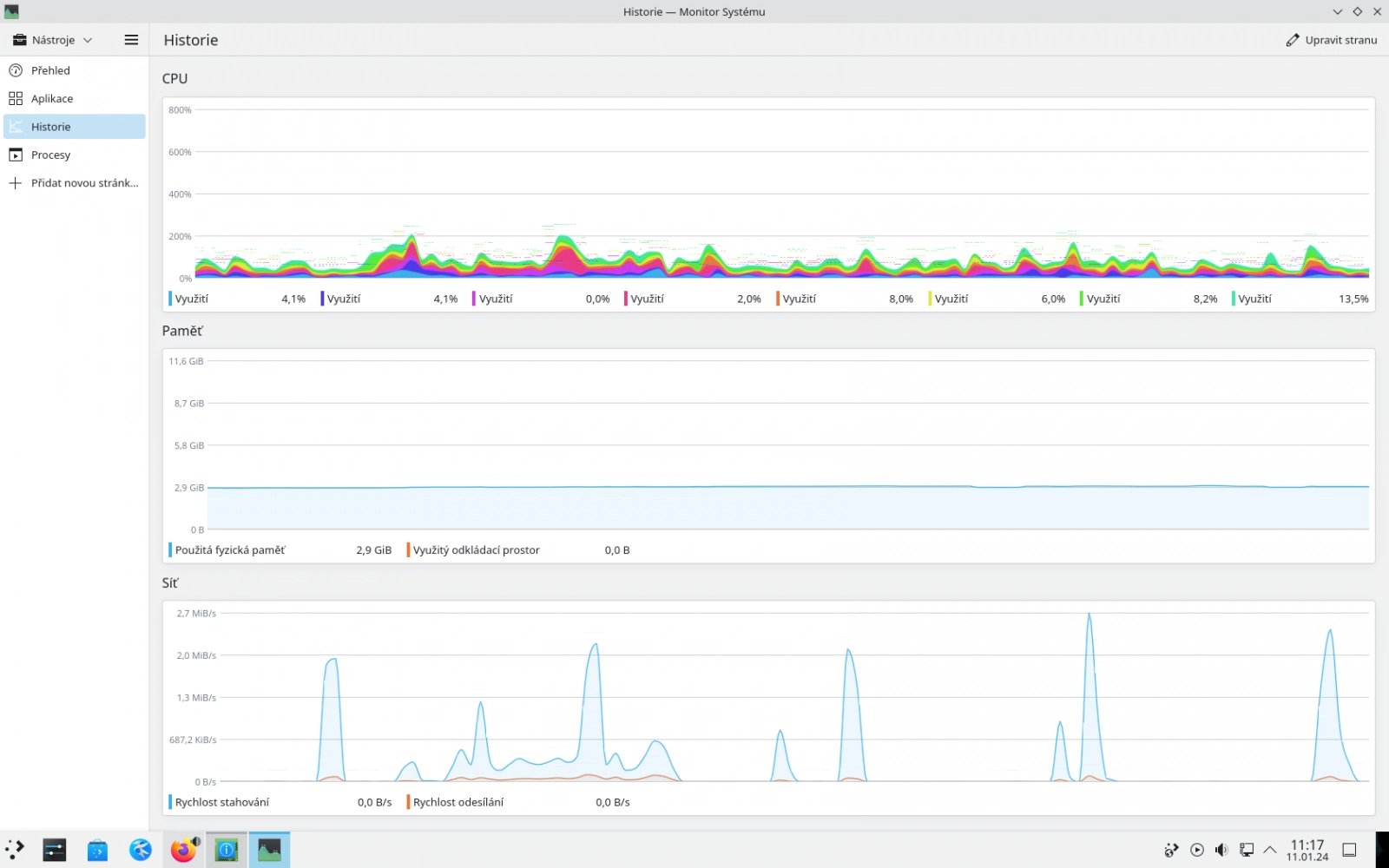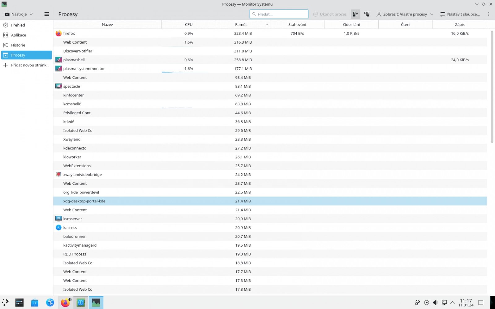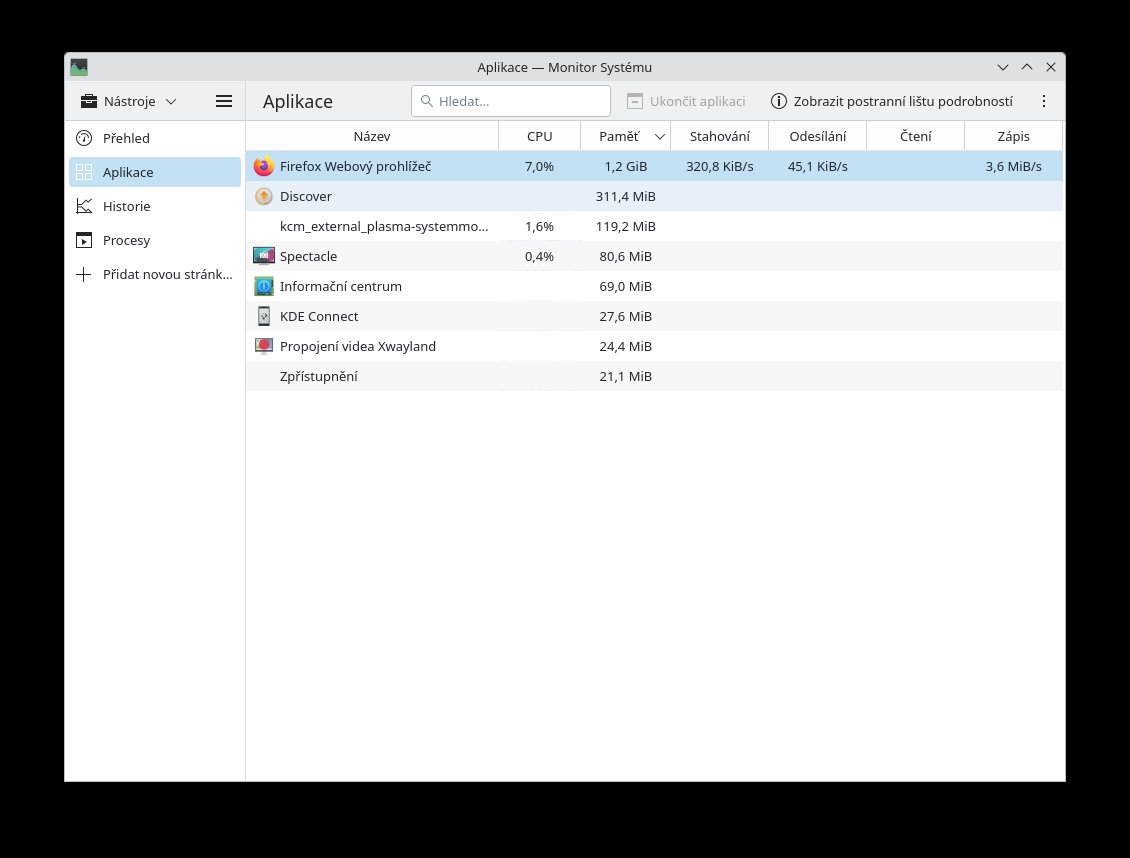 Dále už celá Plasma 6.0 běží obdobně svižně jako Plasma 5.x před ní. Některé efekty se zdají být svižnější, ale nic, co bych dokázal změřit a kvantifikovat do tabulky. Za mě tedy ani zásadní zlepšení, ale rozhodně ne zhoršení. Spotřeba paměti je srovnatelná s Plasmou 5.x