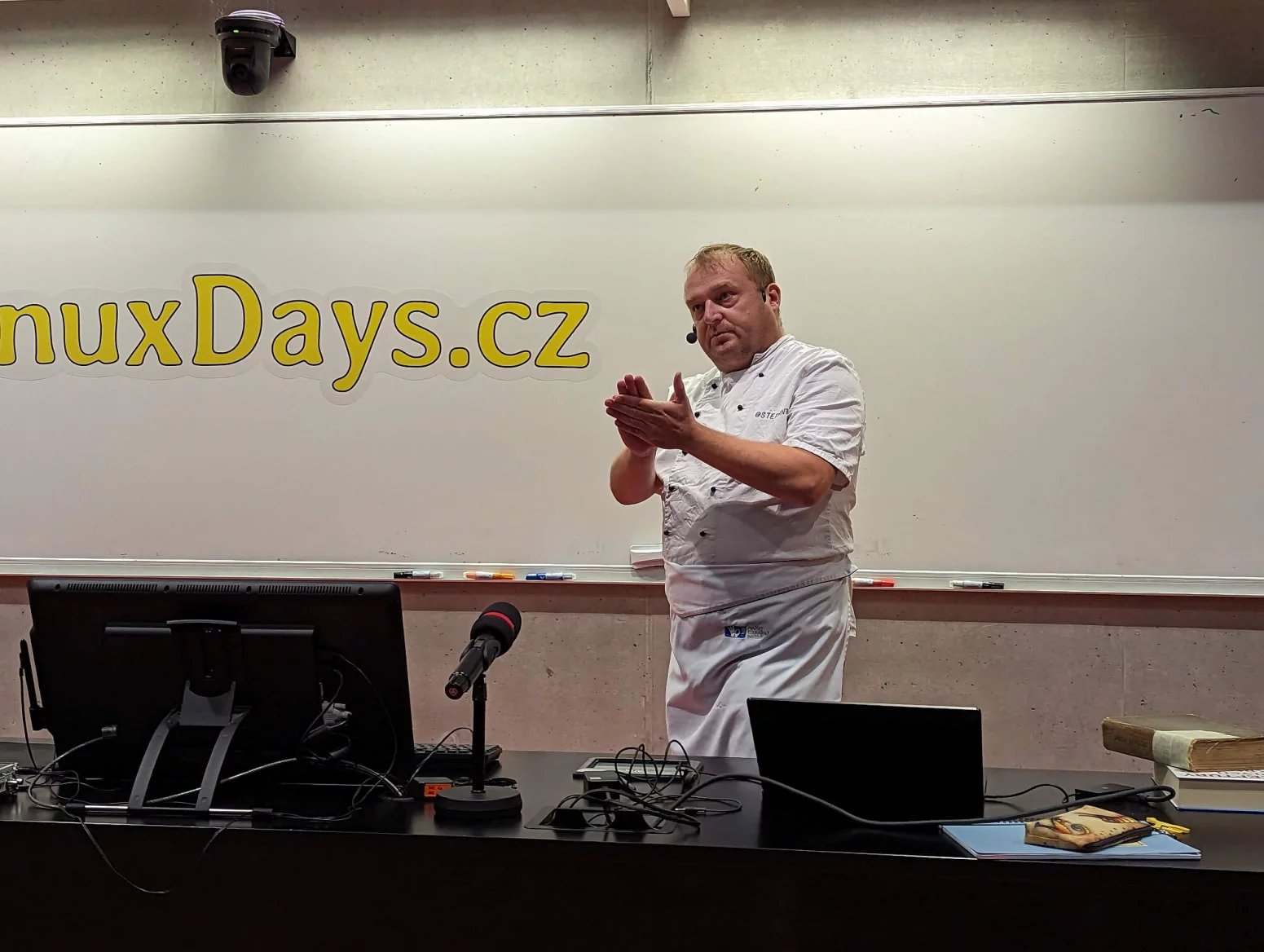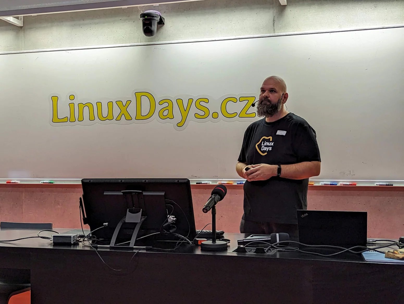 Letošní konferenci zahájil opět tradičně hlavní organizátor Petr Hodač. Na letošní LinuxDays bylo přihlášeno celkem 105 přednášek, přijato jich do programu bylo 70. To znamená, že se snažíme pracovat na kvalitě.