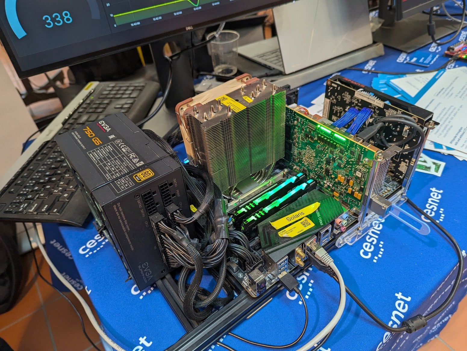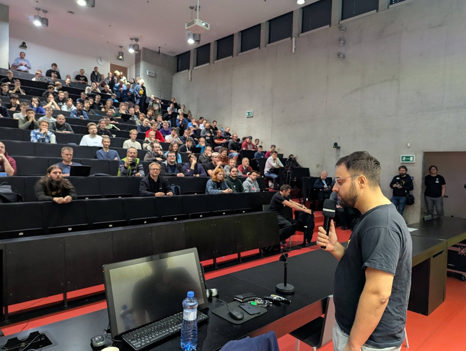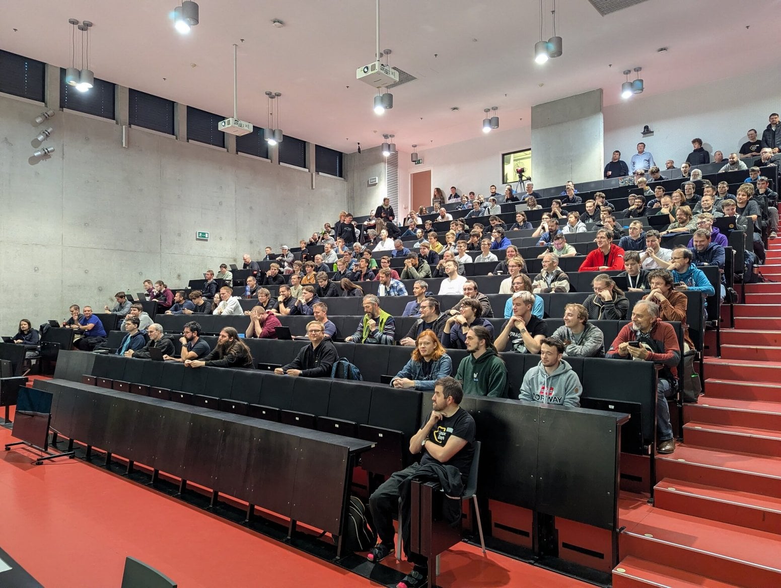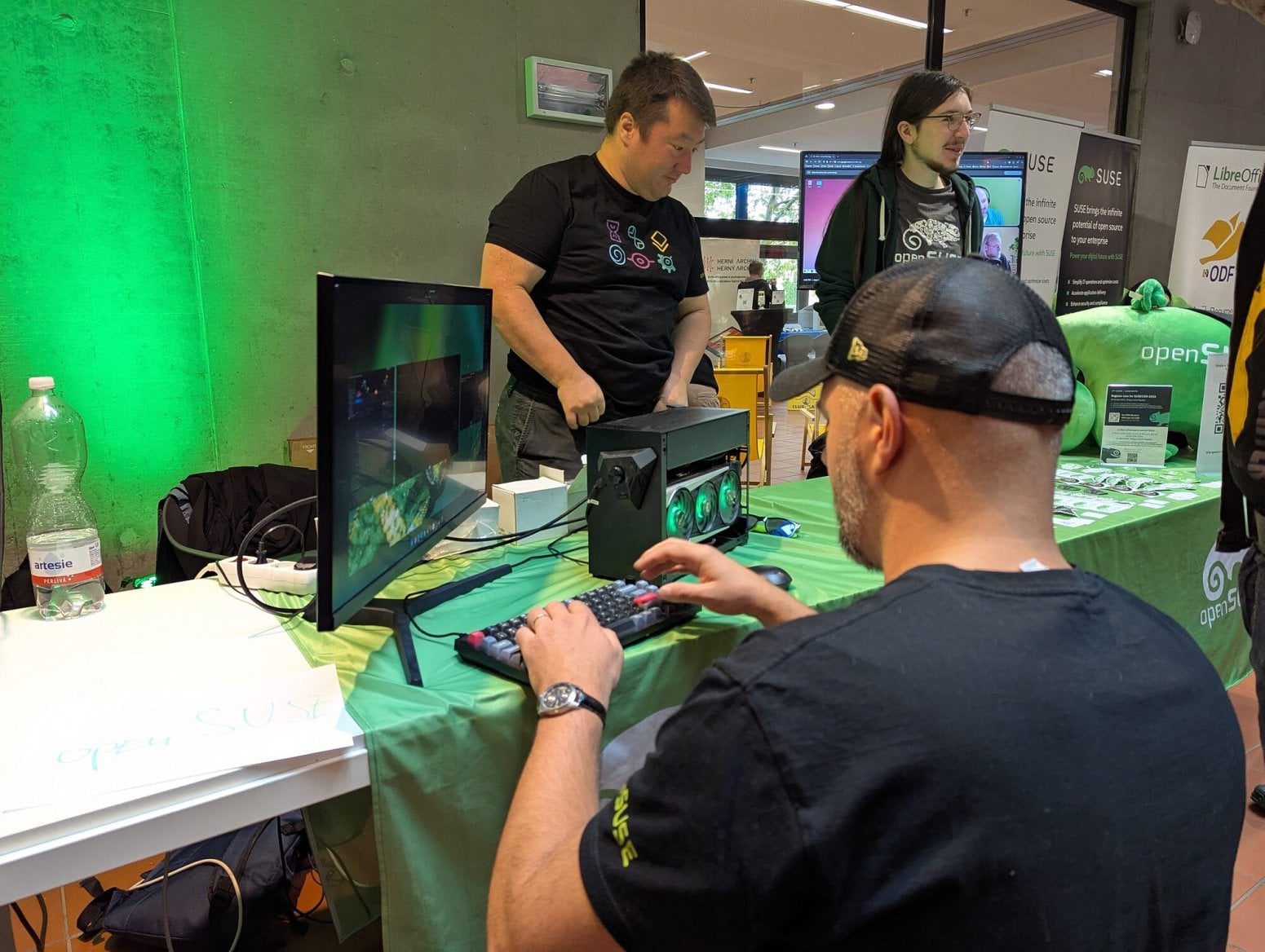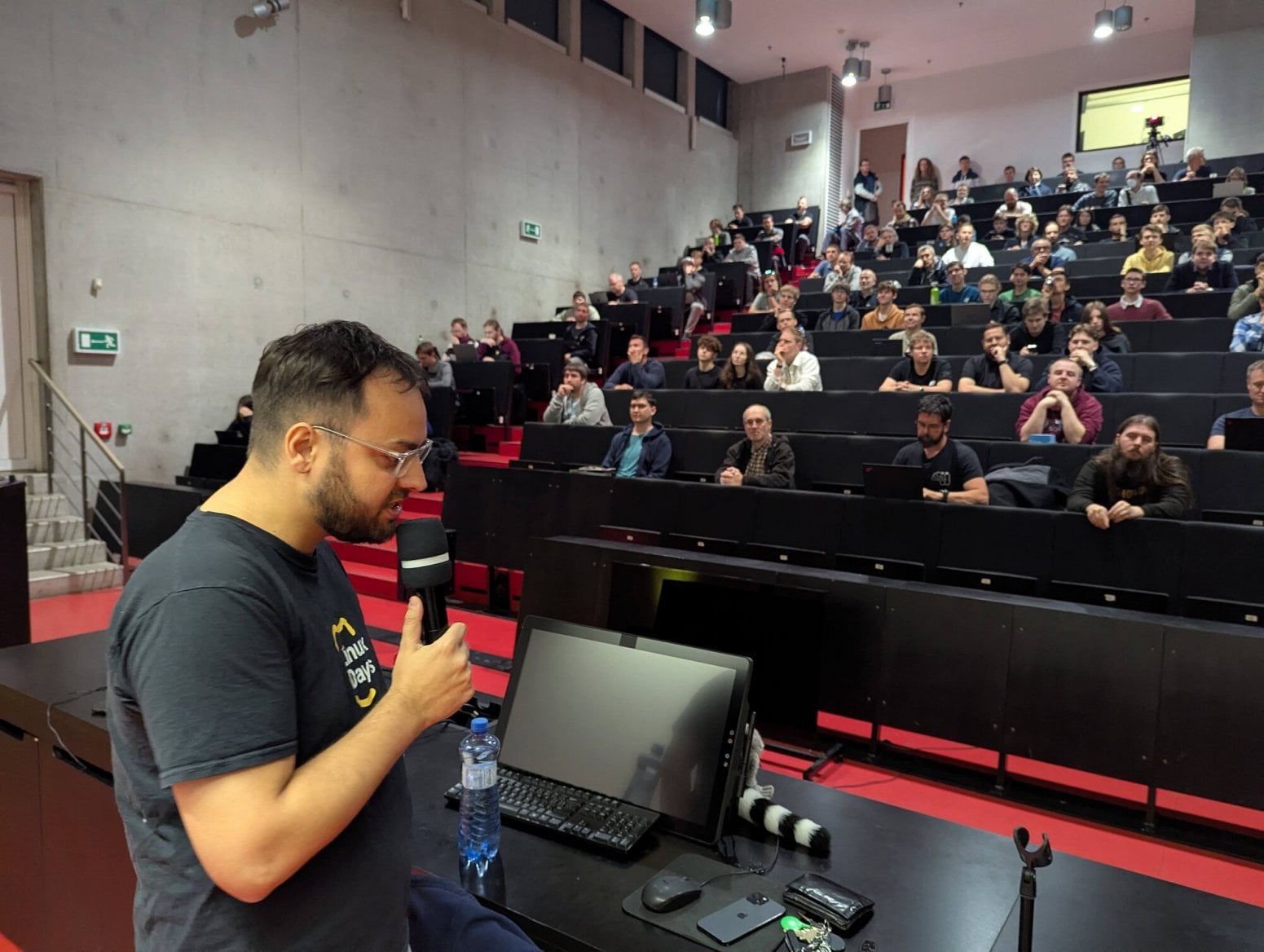 Michal Hrušecký přímo na LinuxDays poprvé veřejně představil nový router Turris Omnia NG, který během přednášky vybalil z krabice. Zdroj je poměrně velký a má výkon 90 W. Omnia typicky nežere tolik, ale je možné ji rozšířit o řadu periferií.
