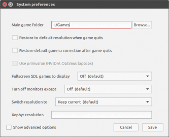 Ve většině případů hry nebo Lutris nemusíte nijak konfigurovat, výchozí nastavení funguje bez problémů. Co se týče globálního nastavení (Lutris → Preferences), tak mohou pomoci zejména možnosti Restore to default resolution when game quits, pokud máte potíže s navrácením k běžnému desktopovému rozlišení, nebo Reset PulseAudio, pokud vám hapruje zvuk.