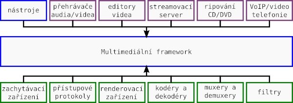 Před vlastním přehledem je nejprve nutné vysvětlit, co to vlastně multimediální framework je. Jedná se o soubor knihoven a nástrojů pro práci s multimediálními daty, nejčastěji videem a audiem. Na tento framework můžeme nahlížet z pohledu aplikace, která v sobě chce jeho služby využít. Aplikací může být třeba audio nebo video přehrávač, editor videa, streamovací server apod.