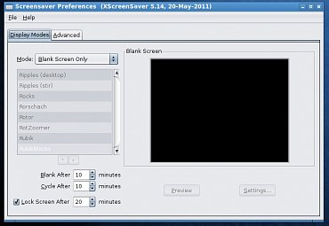 Jako poslední aplikaci bych v této kapitole uvedl spořič obrazovky. Já ho nepoužívám jako vlastní spořič, ale jako aplikaci, která po určité době ztmaví obrazovku a následně ji uzamkne. Konkrétní nastavení je vidět na obrázku.