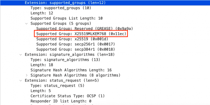 Aplikace napsaná v jazyce Go využívající výchozí knihovnu crypto/tls podporují ve výchozím nastavení X25519MLKEM768 od verze 1.24.