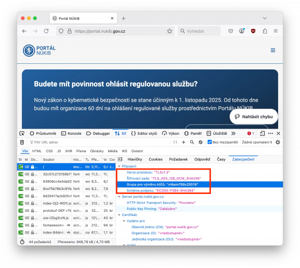 V případě přístupů na Portál NÚKIB využívá již 58 % HTTP požadavků algoritmus X25519MLKEM768.