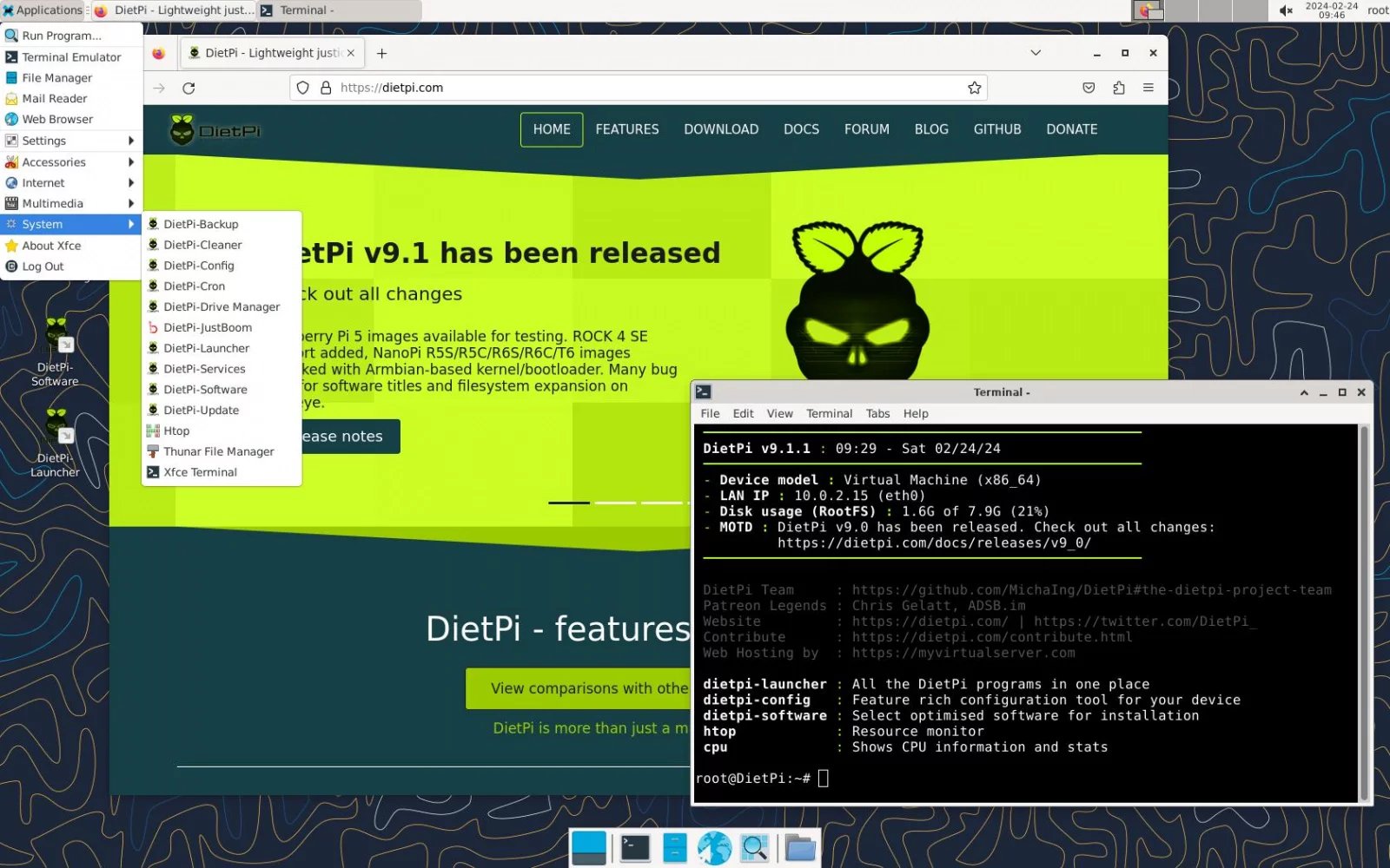 Lehká linuxová distribuce DietPi vydala verzi 10.0, která nově staví na Debianu 12 (Bookworm). Systémy s Debianem 11 jsou přesunuty do kompatibilní větve a uživatelům se doporučuje provést upgrade. Přímý přechod na DietPi 10.0 je možný pouze z verzí 8.0 a novějších.