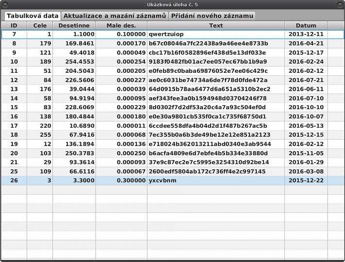 row(Integer.valueOf(u_Cele.getText()), BigDecimal.valueOf(Double.valueOf(u_Desetinne.getText())), BigDecimal.valueOf(Double.valueOf(u_Maledes.getText())), u_Text.getText(), java.sql.Date.valueOf(u_Datum.getText())))