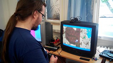 Blok přednášek byl doplněn RetroHernou, v níž si mohli účastníci „osahat“ historické mikropočítače a herní konzole, na nichž byly spuštěny známé i méně známé hry. K vidění a odzkoušení byly mnohdy i velmi zajímavé kousky hardware, zejména osmibitová herní konzole Vectrex s vektorovou obrazovkou. Tuto herní konzoli zde nezmiňuji bezdůvodně, protože je velký rozdíl mezi pohledem na její fotky (či pohledem na screeshoty získané z emulátoru) a skutečným dojmem z již zmíněné vektorové obrazovky viděné naživo.