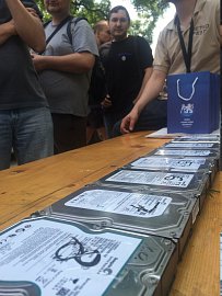 Nesmíme samozřejmě zapomenout ani na soutěž. Zatímco v roce 2013 byla na RetroFestu uspořádána soutěž o hod serverem na dálku, letos se házelo harddisky na určenou metu (tou byl klacek zapíchnutý v zemi :-). Podle slov organizátorů byly disky vadné již před soutěží…