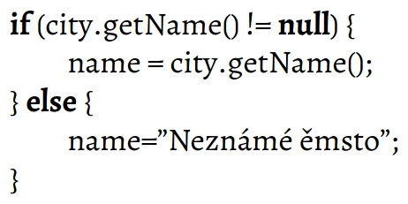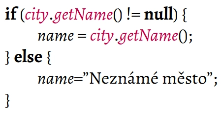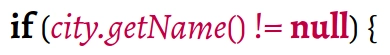 if (Ý\color{purple}\emph{city.getName}() != \textbf{null}Ý) {