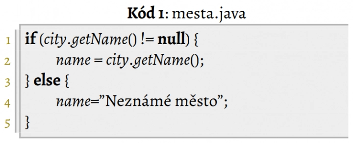 - Jsou zvýrazněna klíčová slova jazyka Java.