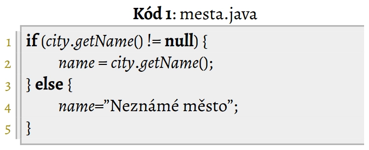 budou všechny výskyty identifikátorů city a getName vysázeny tmavě červenou barvou.