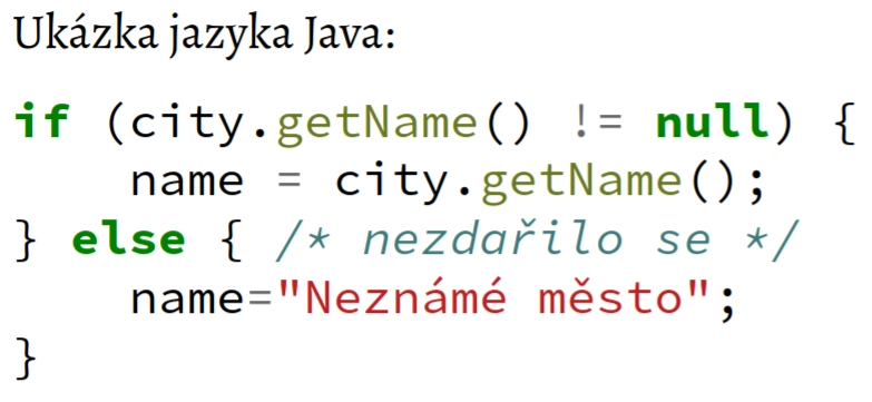 Příkaz\mintinline opět používá libovolný znak k vymezení začáku a konce kódu: \mintinline{java}#if (x<0)# . Lze použít i složené závorky, pokud nejsou v kódu obsaženy. Načtení externího souboru zajistí \inputminted{java}{mesta.java} .