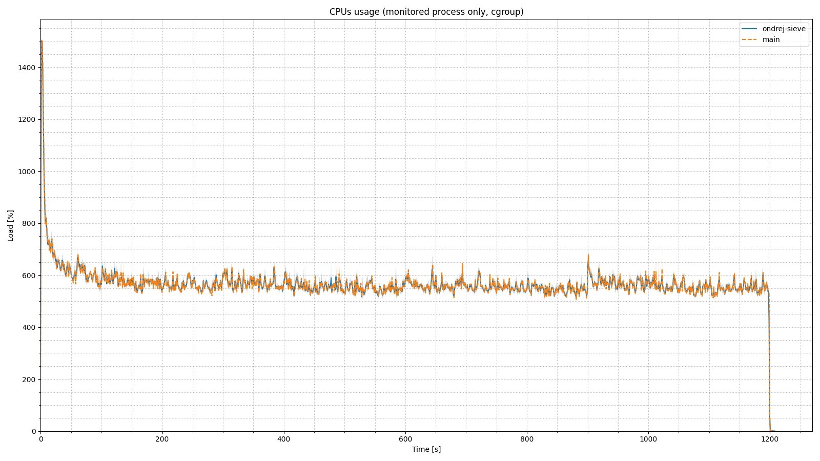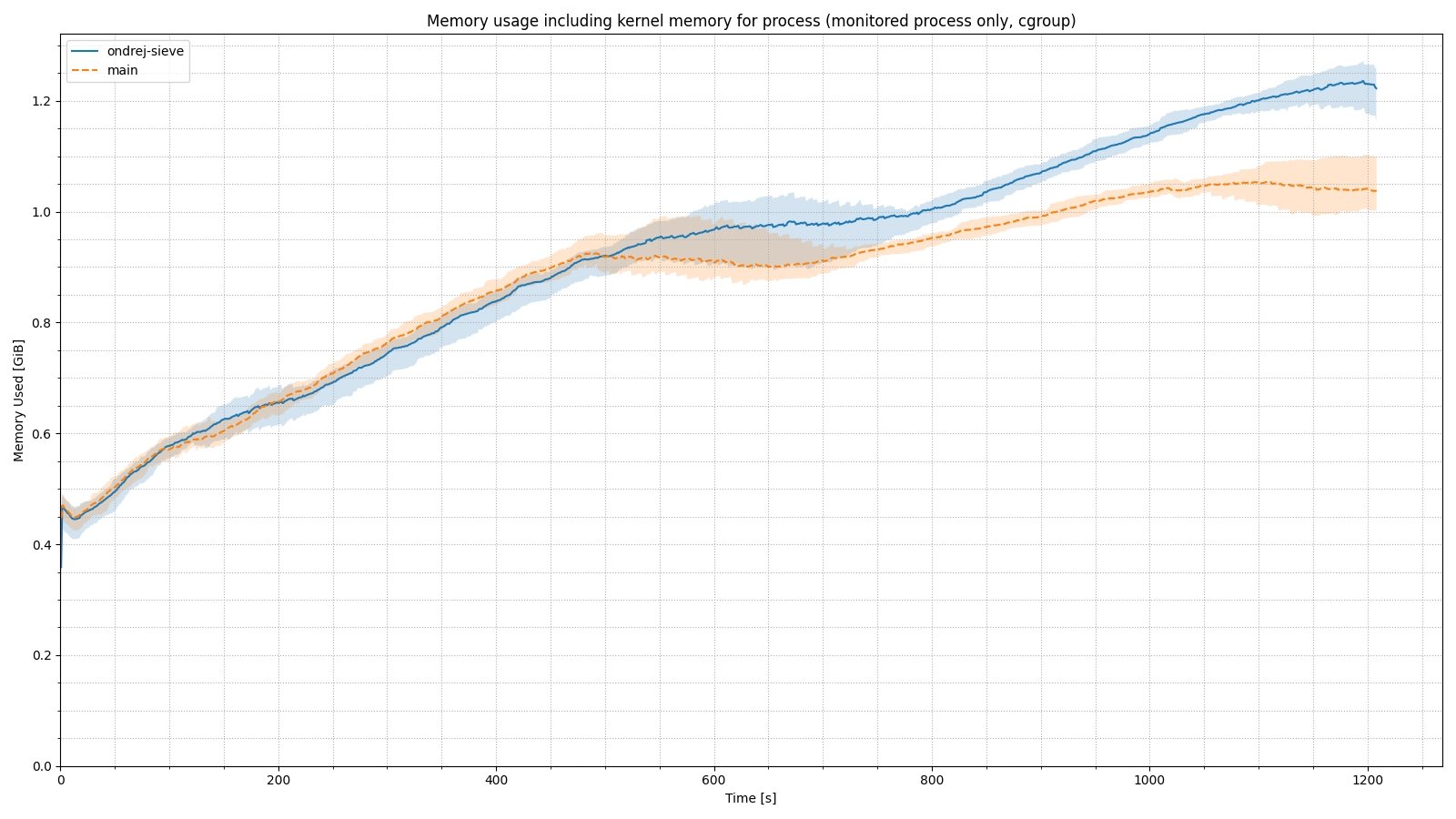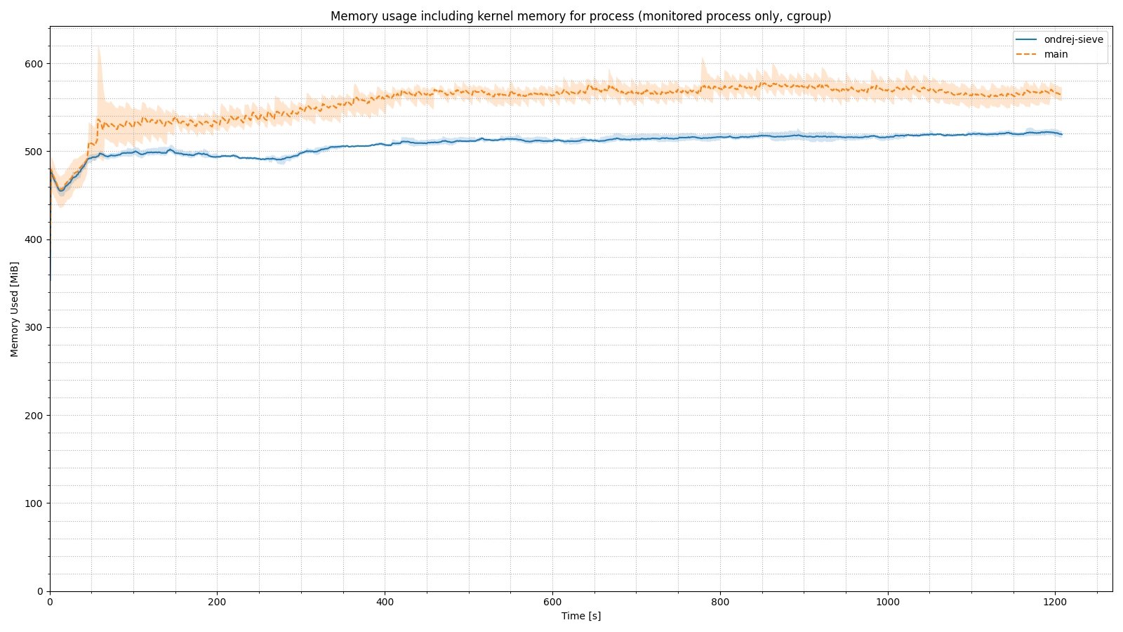 Ve využití CPU pak nedochází k žádnému pozorovatelnému rozdílu. Ve využití paměti lze ale pozorovat, že kvůli odstranění čištění keše založeného na TTL, dochází k nárůstu spotřebované paměti. To je ve své podstatě v pořádku, protože cílem keše je ukládat data, nikoli je preventivně zahazovat.