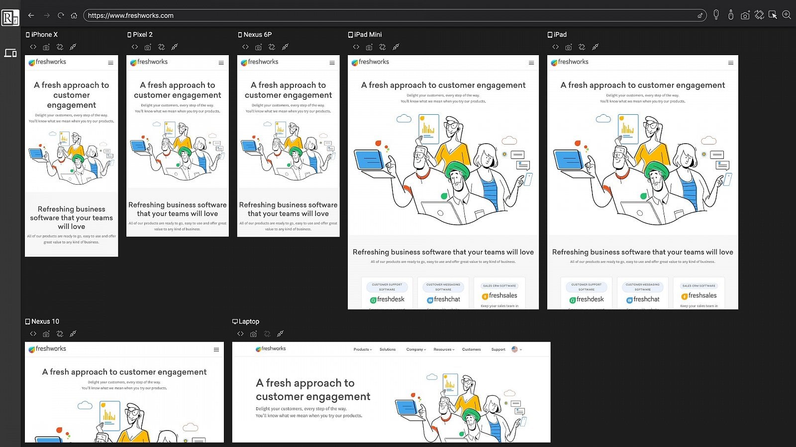 Upravený prohlížeč, který má usnadnit práci vývojářům a tvůrcům webu. V jednom okně ukazuje, jak se bude váš web zobrazovat na různých zařízeních. Vybrat si můžete z více než 30 profilů různých zařízení a rozmístit si je podle potřeby. Každá akce, kterou provedete, se v reálném čase projeví ve všech oknech.