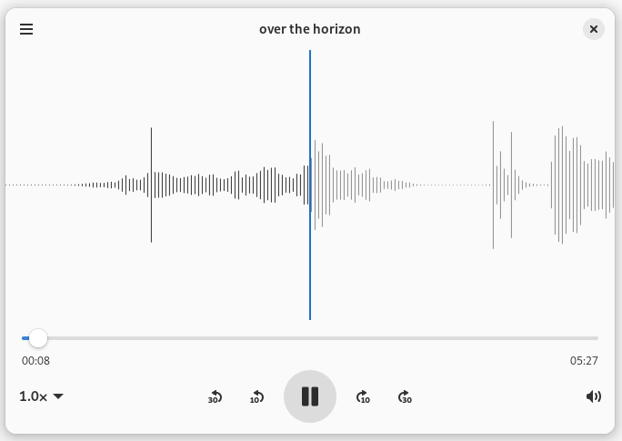 Opravdu minimalistický audio přehrávač. Umí přehrávat některé (ne všechny) z nejpopulárnějších audio formátů (včetně MP3 a MP4). Má opravdu jednoduché grafické rozhraní, které využívá knihovny GTK, které nabízí jen několik základních ovládacích prvků, jako je možnost upravit rychlost přehrávání, pár ovládacích prvků pro přesun, rychlý způsob ztlumení hlasitosti a nastavení hlasitosti. Aplikace nemůže zpracovávat více než jeden zvukový soubor najednou.