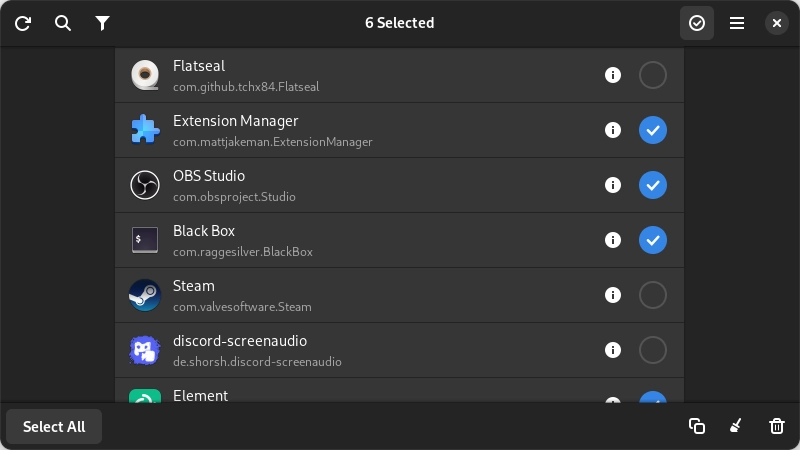 Grafický nástroj, který usnadňuje správu aplikací a repozitářů Flatpak (např. Flathub, GNOME Nightly atd.) na Linuxu. Poskytuje grafické rozhraní pro přístup k funkcím balíčkovací platformy, které jsou obvykle dostupné pouze z příkazové řádky.