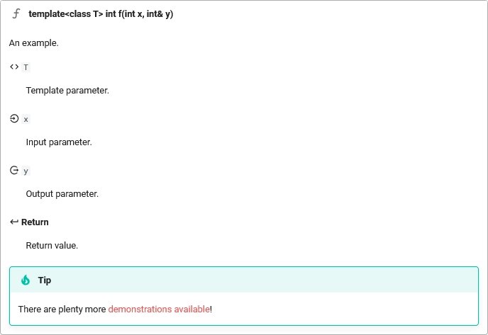 Zdrojový kód je analyzován a dokumentace zpracována do formátu Markdown a poté do HTML. Zaměřuje se na online dokumentaci s moderním vzhledem a responzivním designem pro stolní počítače a mobilní zařízení.
