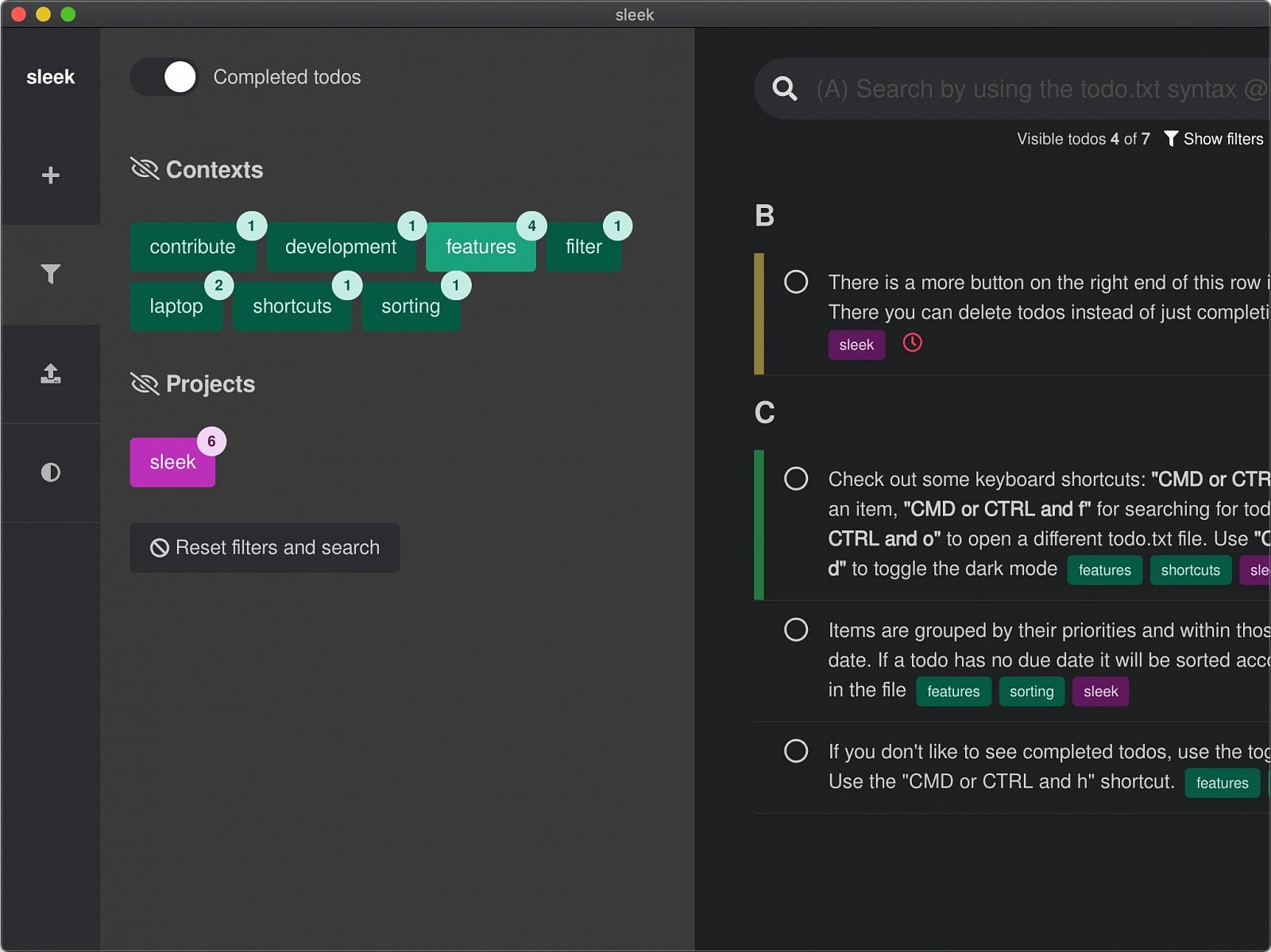 Otevřená aplikace pro správu úkolů. Nabízí moderní a jednoduché grafické rozhraní, které poskytuje veškeré potřebné funkce. Uživatelé můžou přidávat obsah, projekty, priority, termíny nebo opakování jejich úkolů. Ty pak můžou podle těchto kritérií jednoduše vyfiltrovat. Rozpracované úkoly se ukládají do samostatných textových souborů, kterých je možné vytvořit i několik pro různé situace. Dokončené úkoly se pak ukládají do dalšího souboru.