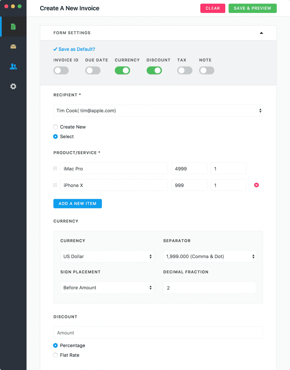 Aplikace pro tvorbu faktur, účtenek a kalkulací za pomoci upravitelných šablon. Nabízí možnost upravit si vlastní šablonu pro rychlejší práci a podporuje funkci pro opětovné objednávky. Pracuje s vektorovou grafikou, což ulehčuje práci s firemním logem a umožňuje kromě tisku také export do formátu PDF. Klade samozřejmě důraz na soukromí a bezpečnost. Zatím je lokalizovaná do několika jazyků, mezi kterými bohužel chybí čeština, ale schopní lokalizátoři jsou vítáni.