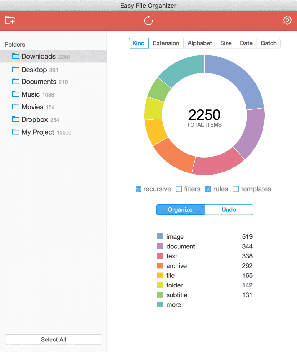 Utilitka (dříve pod názvem Organize My Files), která ukončí chaos ve vašich neorganizovaných souborech. Na pár kliknutí díky ní můžete setřídit všechny soubory podle názvu, typu, přípony, velikosti nebo data. Stačí si jen vybrat složku, která má být zorganizována, a během sekundy zvládne setřídit i 1000 souborů. Je k dispozici jak v light verzi zdarma, tak v komerční plné verzi, nicméně i bezplatná by měla zvládnout vše potřebné k úklidu zaneřáděného počítače.