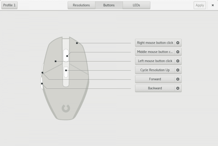 Aplikace s grafickým uživatelským rozhraním pro Linux, která umožňuje nastavovat herní myši podporované službou ratbagd. Podporuje modely od výrobců jako Logitech, Roccat, SteelSeries aj. Nabízí možnost změnit rozlišení a frekvenci dotazování, možnost mapovat tlačítka, ovládat LED diody a vzory osvětlení.