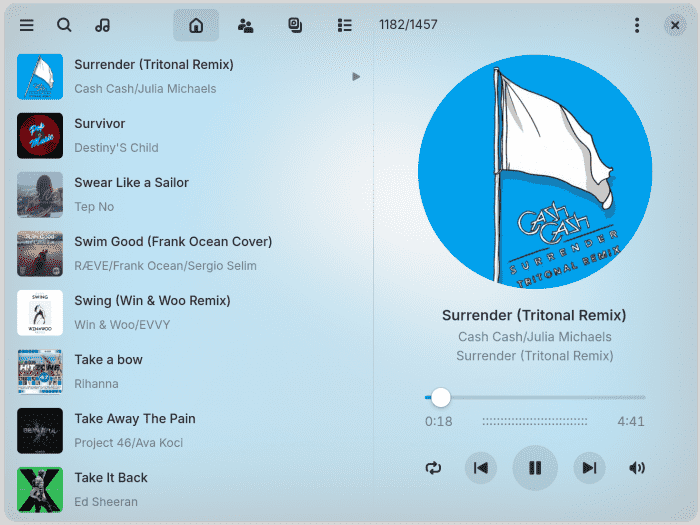 Lehký přehrávač zvuku pro prostředí GNOME napsaný v GTK4. Design je plynulý a samotné rozhraní je vysoce adaptivní s krásným rozostřeným pozadím a umožňuje přetahování přímo ze souborů GNOME. Podporuje všechny nejoblíbenější typy hudebních souborů, stejně jako většinu základních protokolů pro dálkové ovládání.