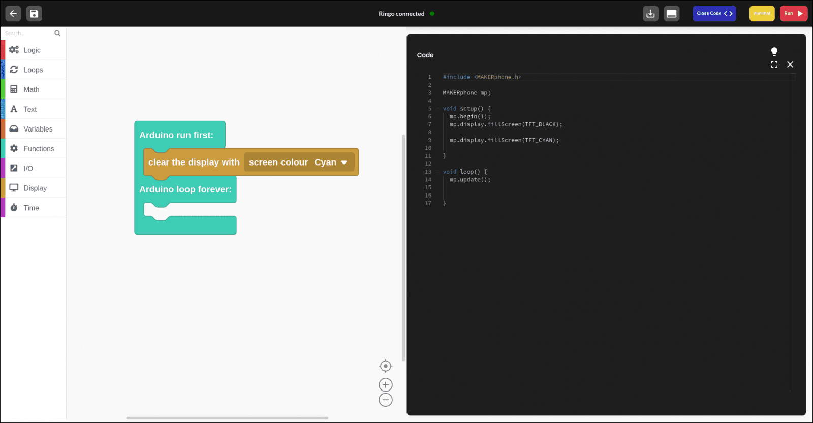 Grafické programovací rozhraní, které má pomoci nováčkům zorientovat se v programování vestavěných systémů. Je založené na Blockly od Googlu a generuje kód kompatibilní s Arduinem.