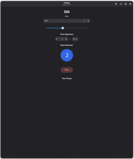 Mezi další funkce patří vizuální indikátory rytmu s akcenty na první dobu, funkce tap tempo, klávesové zkratky (mezerník lze použít ke spuštění a zastavení aplikace a šipky lze použít k okamžitému nastavení tempa) a více časových značek (2/4, 3/4, 4/4, 6/8 atd.).
