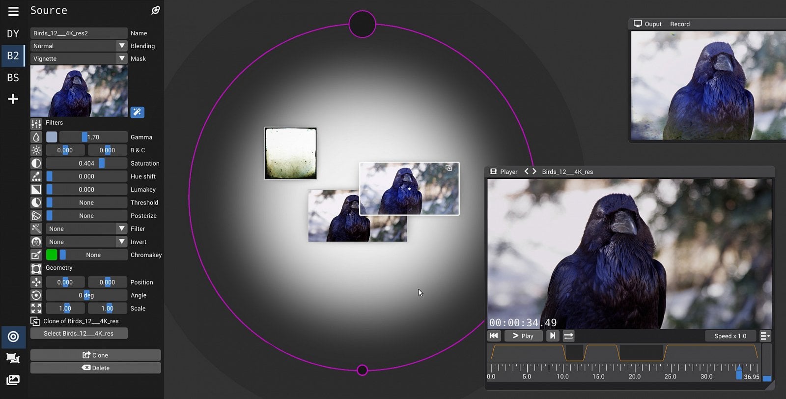 Nástroj pro mixování videa s počítačovou grafikou v reálném čase. Má intuitivní a přehledné grafické uživatelské rozhraní. Díky němu můžete míchat několik video souborů, ovládat průhlednost, vytvářet přechody, ořezávat obrazovku, přidávat počítačem vytvořenou grafikou a provádět spoustu dalších úprav videí. Tento program je pokračovatelem ukončeného projektu GLMixer.