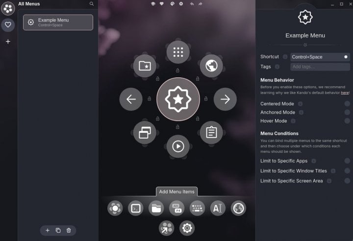 Multiplatformní aplikace s kruhovým menu, která si klade za cíl nabídnout nový a zábavný způsob interakce s operačním systémem, ať už se jedná o Windows, macOS nebo Linux. Je navrženo tak, aby fungovalo jak s myší, stylusem, dotykem nebo s ovladačem.
