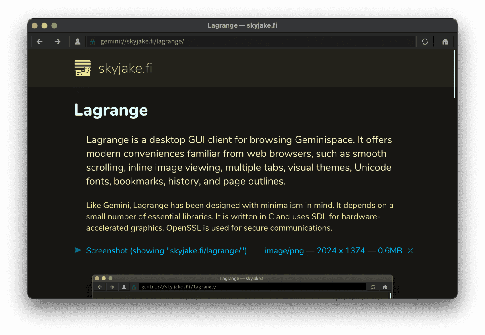 gmi.skyjake.fi/lagrange, 1.1.4