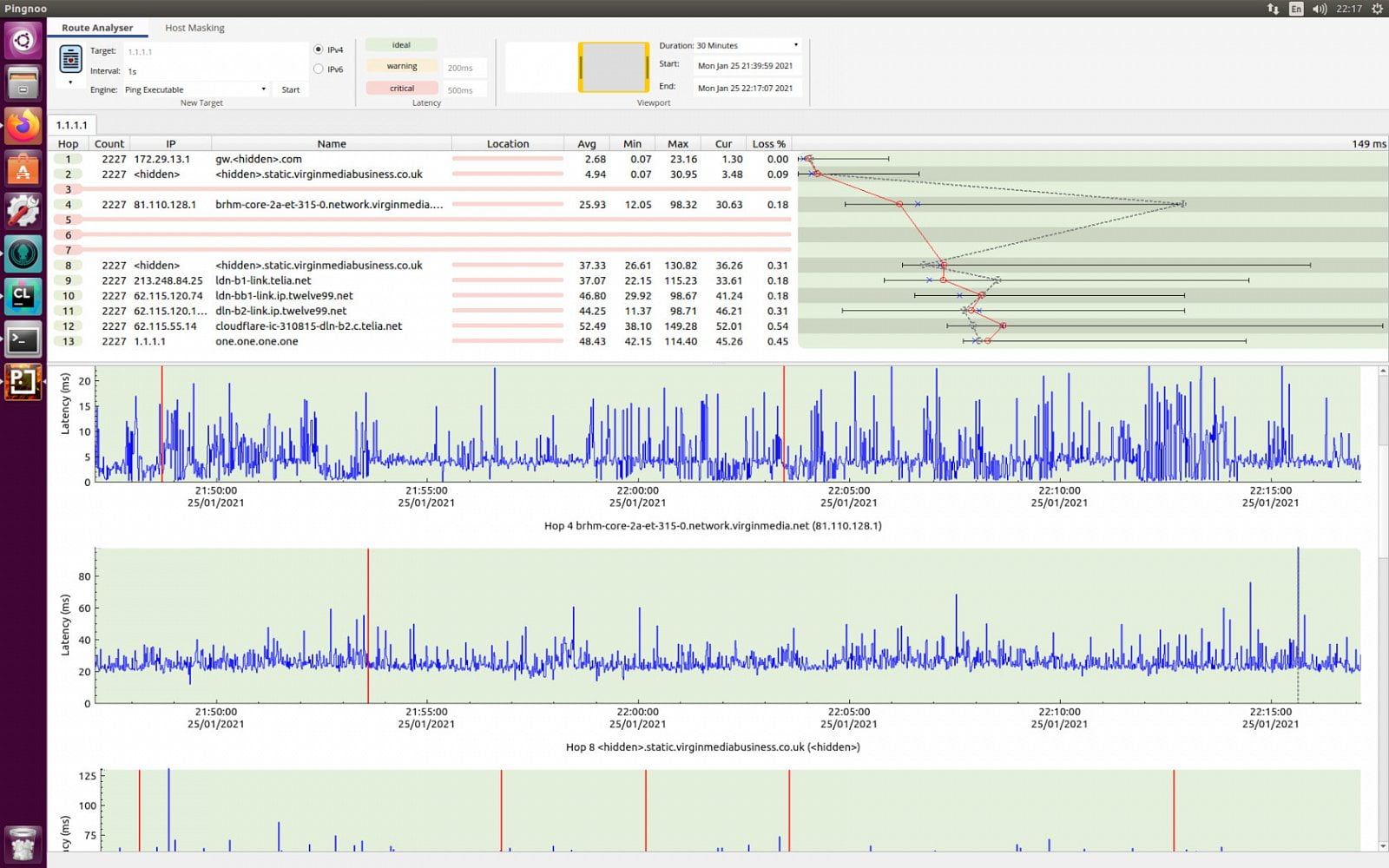 Program, který kombinuje trasování a aplikaci ping pro analýzu síťového připojení. Díky němu můžete měřit latenci připojení, získaná data pak můžete snadno vizualizovat na časové ose a pak je analyzovat a zjistit příčiny latence.