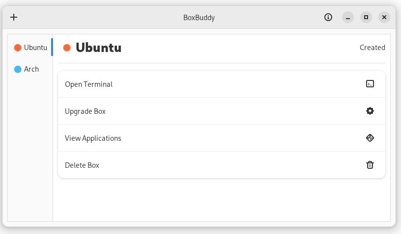 Neoficiální grafické uživatelské rozhraní (GTK4/Libadwaita) pro Distrobox. Jeho účelem je zjednodušit celý proces práce s touto aplikací, která umožňuje nainstalovat libovolný linuxový systém přímo do vašeho hostitelského systému jako kdyby to byly nativní aplikace, což znamená, že k nim můžete přistupovat přímo z menu vyhledávání ve vašem hostitelském systému.