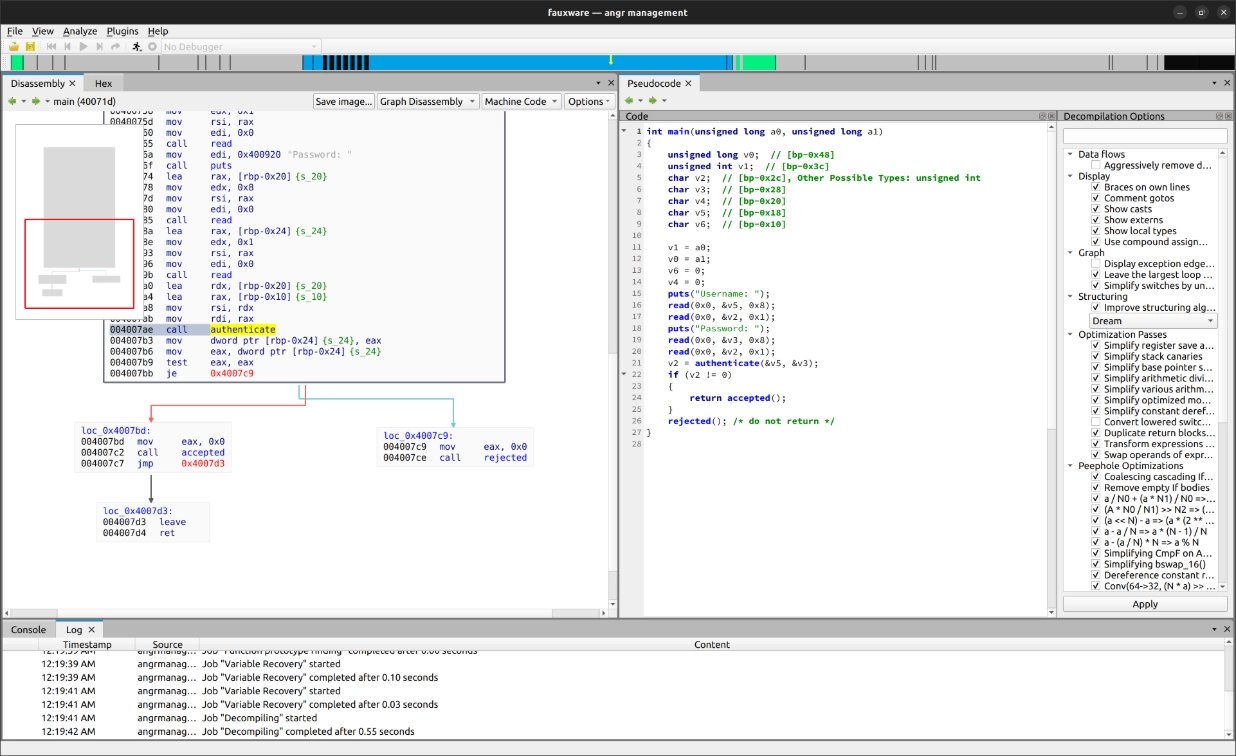 angr poskytuje grafickou nadstavbu pro angr, což je platforma určená k interaktivní analýze binárních souborů. Umožňuje disassemblování, dekompilaci, symbolickou exekuci a patchování binárních souborů, přičemž poskytuje různé pohledy na jejich strukturu a obsah.