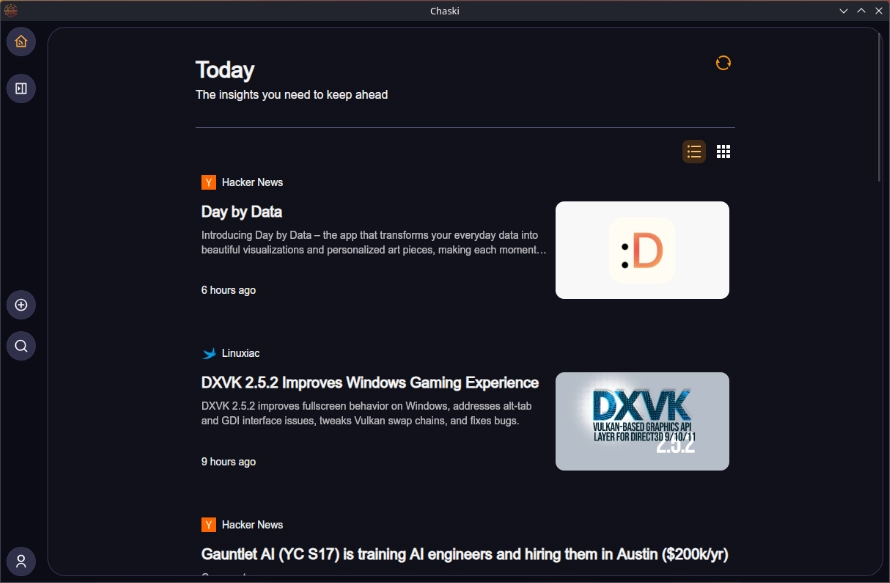 Chaski je čtečka kanálů RSS a Atom, která vás udržuje v obraze. Dokáže automaticky rozpoznat URL adresu feedu dle adresy webu. Nabízí funkce pro import a export kanálů ve formátu OPML. Jedná se o XML formát používaný pro sdílení seznamů webových kanálů mezi různými agregátory obsahu.