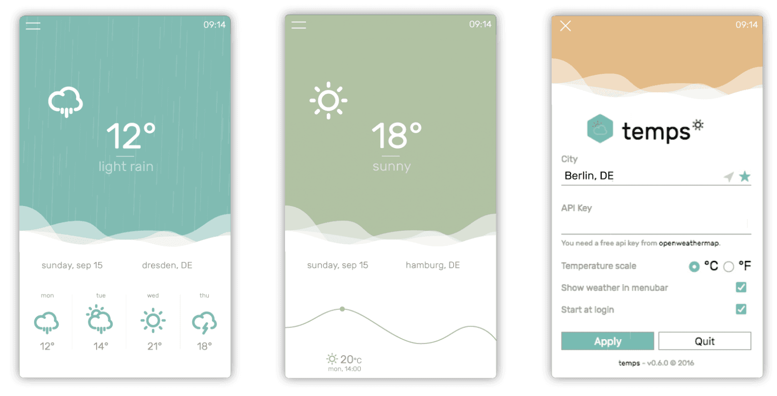Stylový meteorologický applet pro váš desktop, který nevyžaduje instalaci. Jednoduché rozhraní obsahuje informace o aktuálním počasí, teplotě, datu, času a místě a k tomu základní čtyřdenní předpověď. Příjemně překvapí animace sněhu, deště a blesků. K dispozici je také přehledný diagram znázorňující změny teplot během dne.